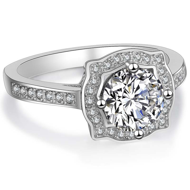 Womens Crown Ring 1.25 Carat Stone Cupronickel White Gold