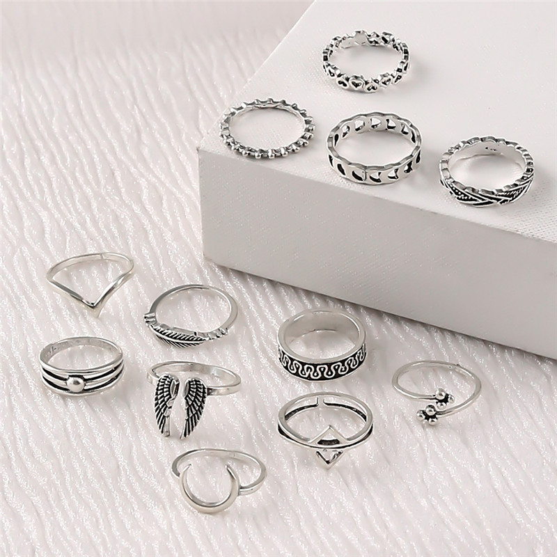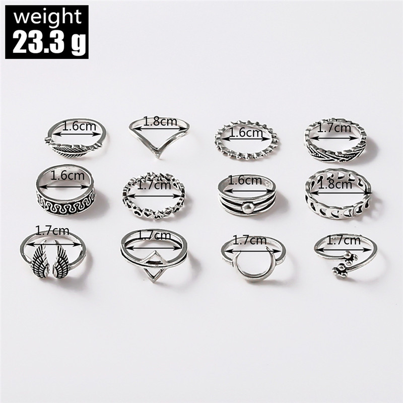 Womens Ring Set 12 Pcs European American Alloy Electroplated Rings Triangle Leaf Joint Designs Fashion Jewelry