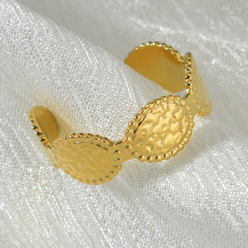 Womens Gold Plated Stainless Steel Oval Texture Geometric Adjustable Opening Bracelet Fashion Jewelry Gift Lux