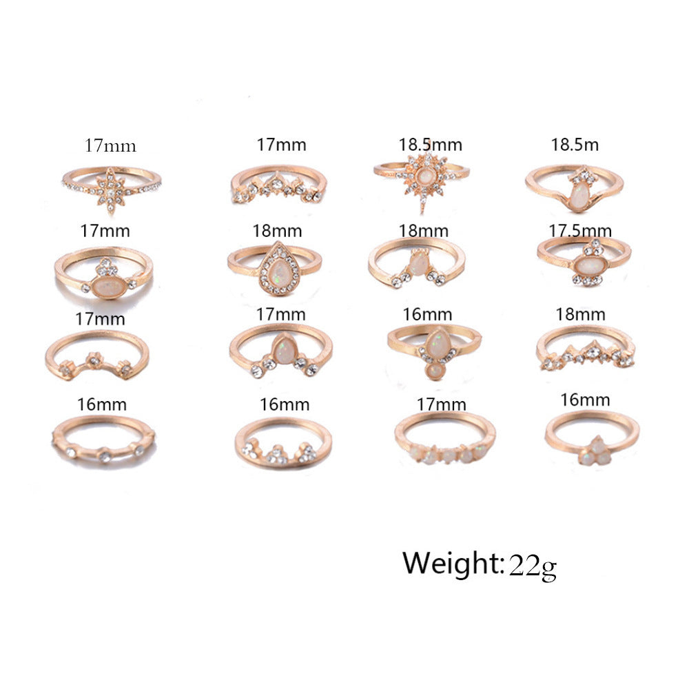 Unisex 16 Piece Retro Vintage Rings Set Alloy Diamond Accent Crown Water Drop Geometric Jewelry Collection Set