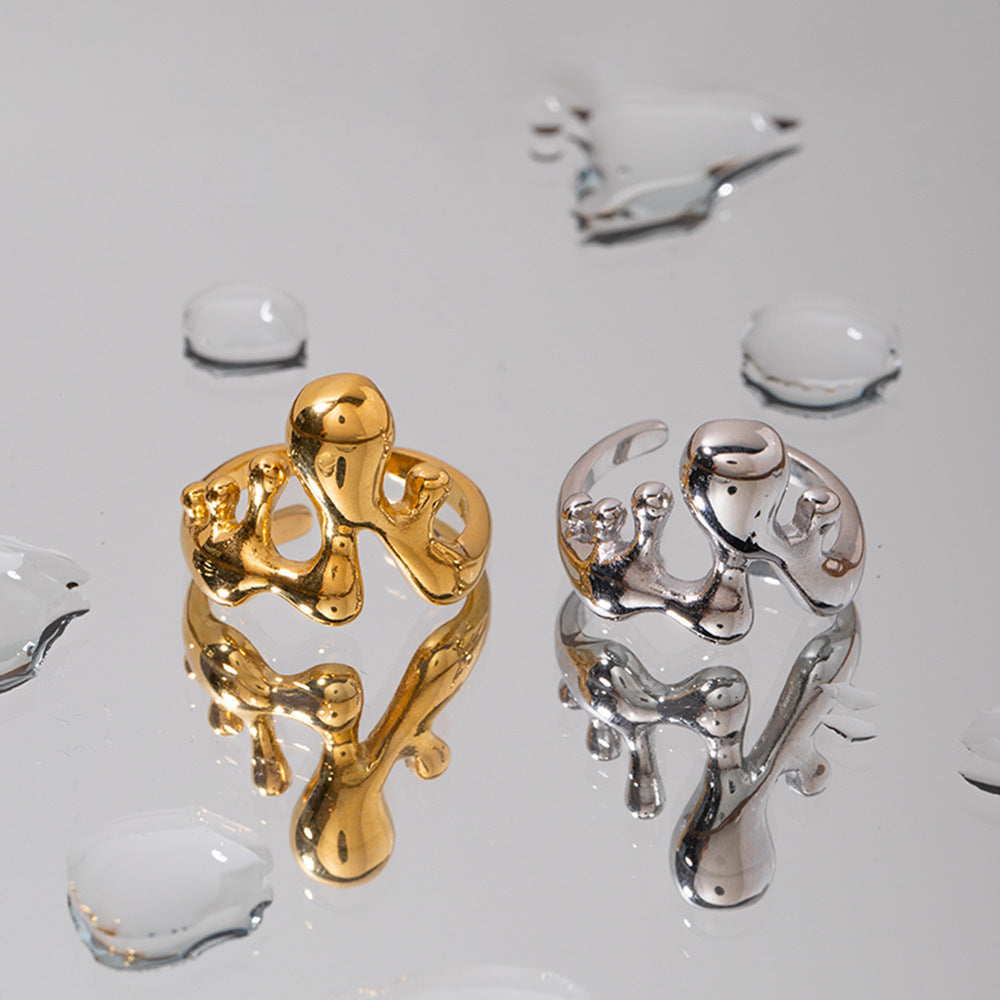 Women Stainless Steel Rings 18K Gold Plated Liquid Melting Design Fashion Jewelry Statement Rings Elegant Bands