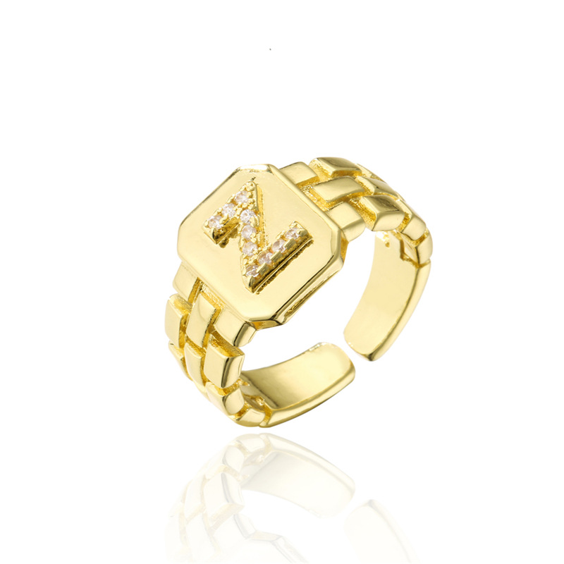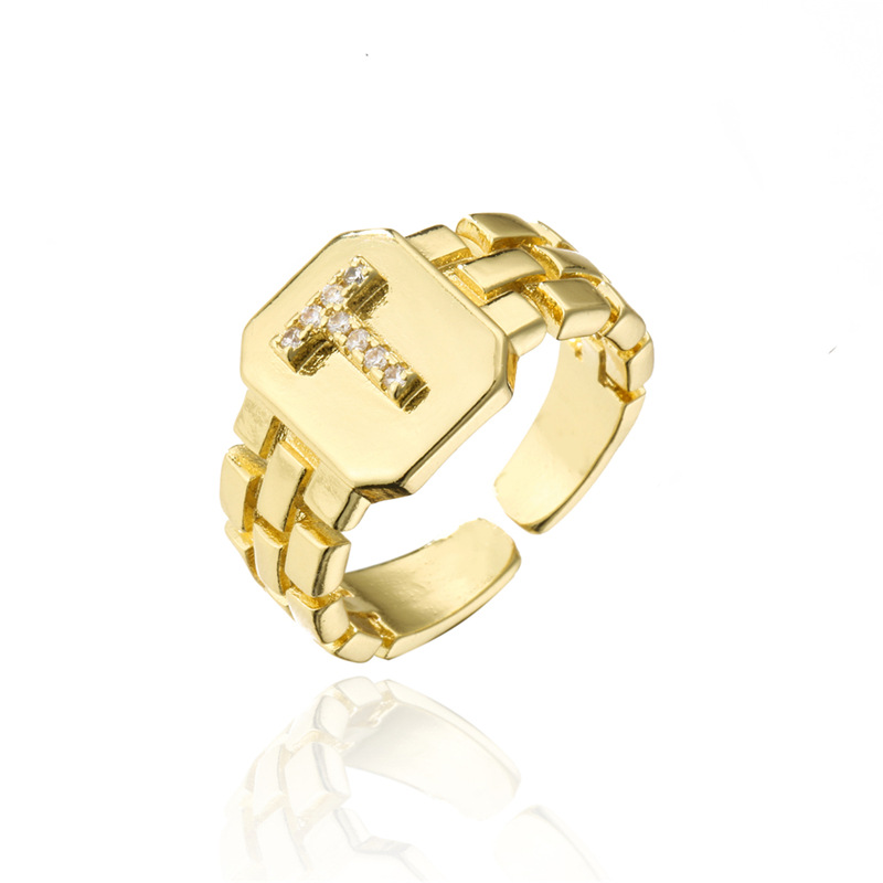 Womens Adjustable Letter Ring 18K Gold Plated Zircon Initial Alphabet Ring Jewelry For Her Elegant Everyday Accessory
