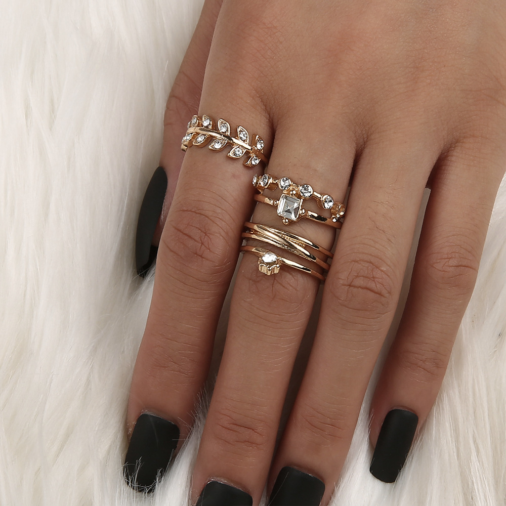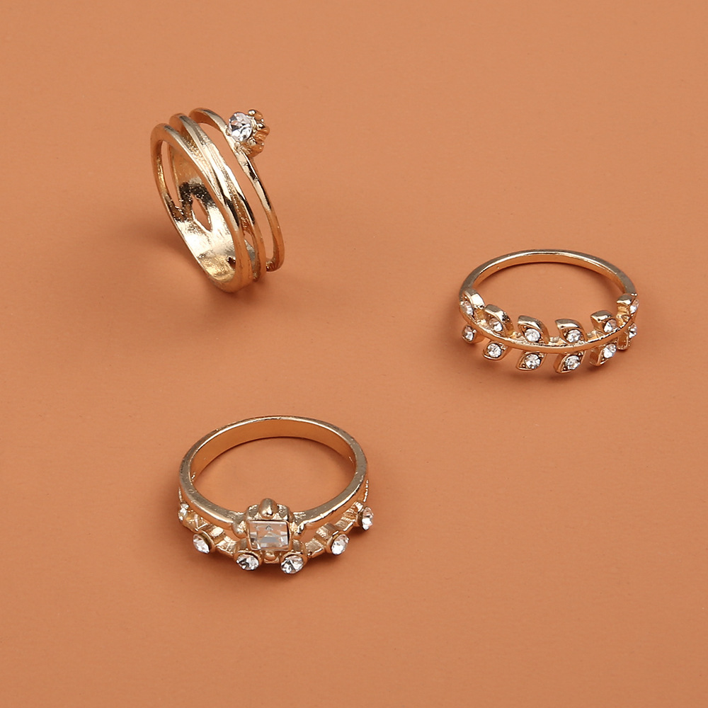 Womens Flower Ring Set 3 Piece Gold Alloy Inlaid Gem European Vintage Wedding Rings Fashion Jewelry Gift Style