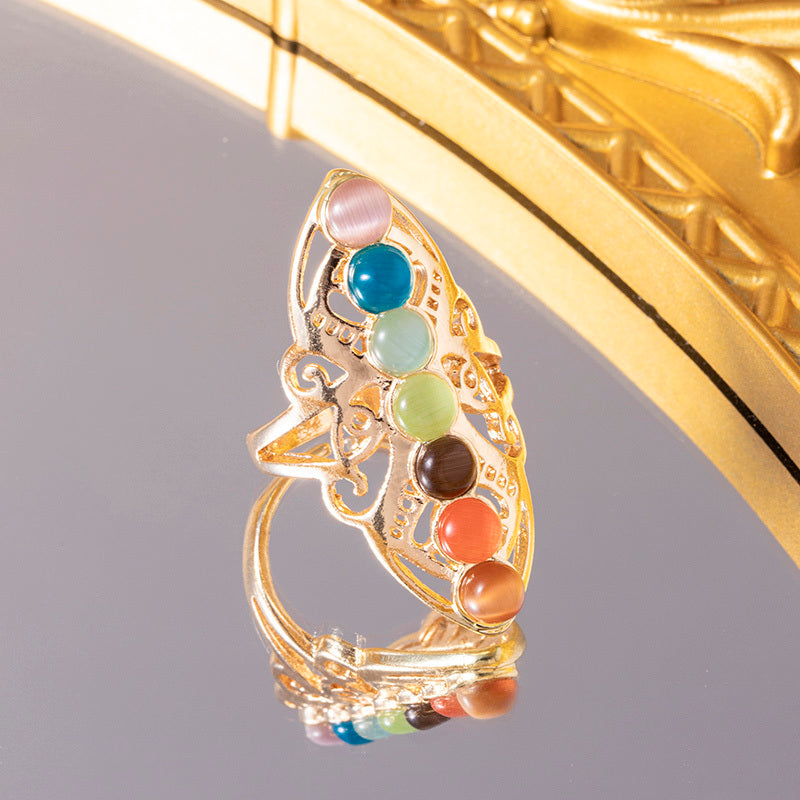 Adjustable Stone Yoga Ring Silver Butterfly Geometric Hollow Chakra Ring Vintage Fashion For Women And Men Chic