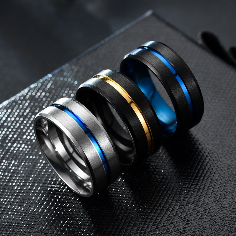 Unisex Stainless Steel Ring Two Tone Brushed Finish 8mm Band Anniversary Ring Fashion Jewelry Middle Slot Color