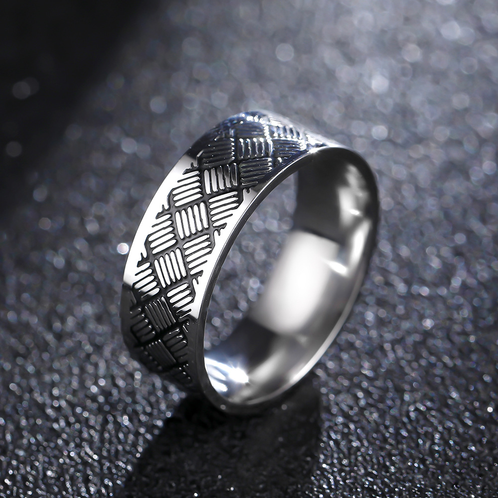 Vintage Geometric Engraved Ring 8mm Stainless Steel Band Titanium Look Men Women Fashion Jewelry Classic Style