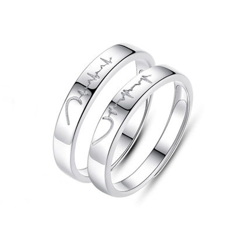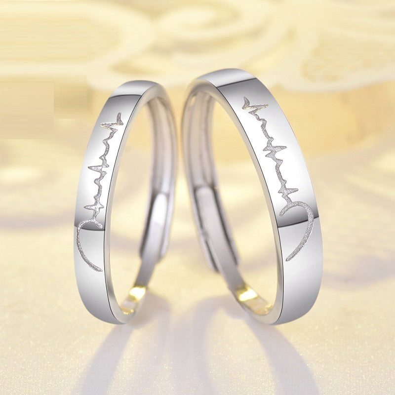 925 Silver Creative Student Heart Couple Ring ECG Ring