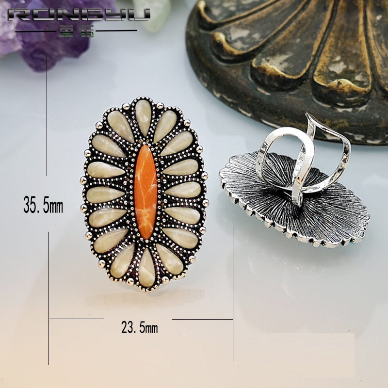 Retro Exaggerated Ring Colorful White Jade Turquoise Adjustable Opening Unisex Electroplated Statement Jewelry