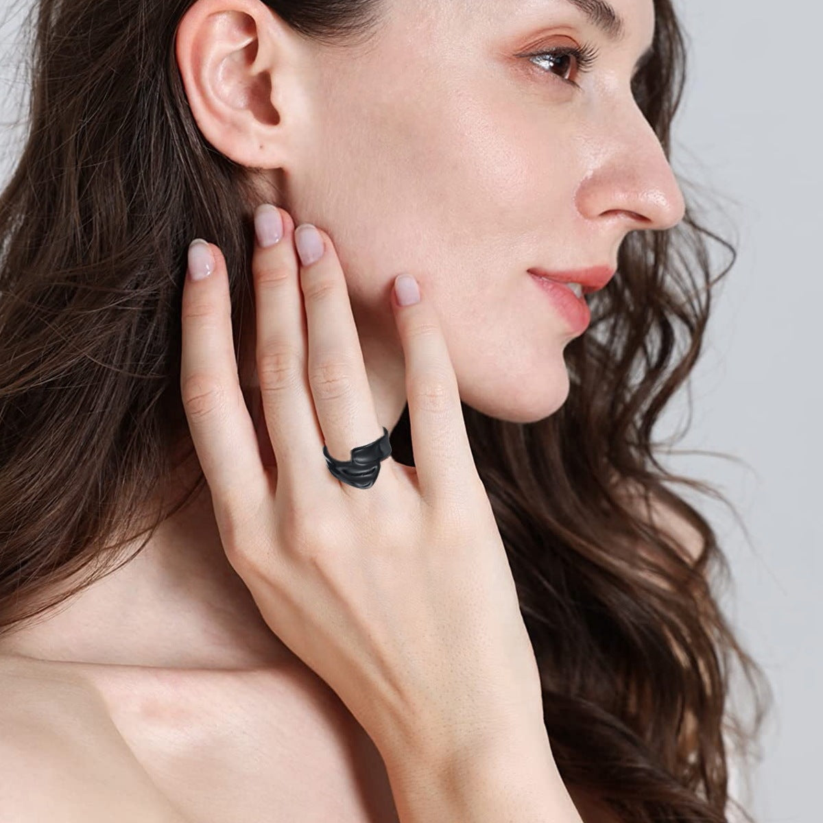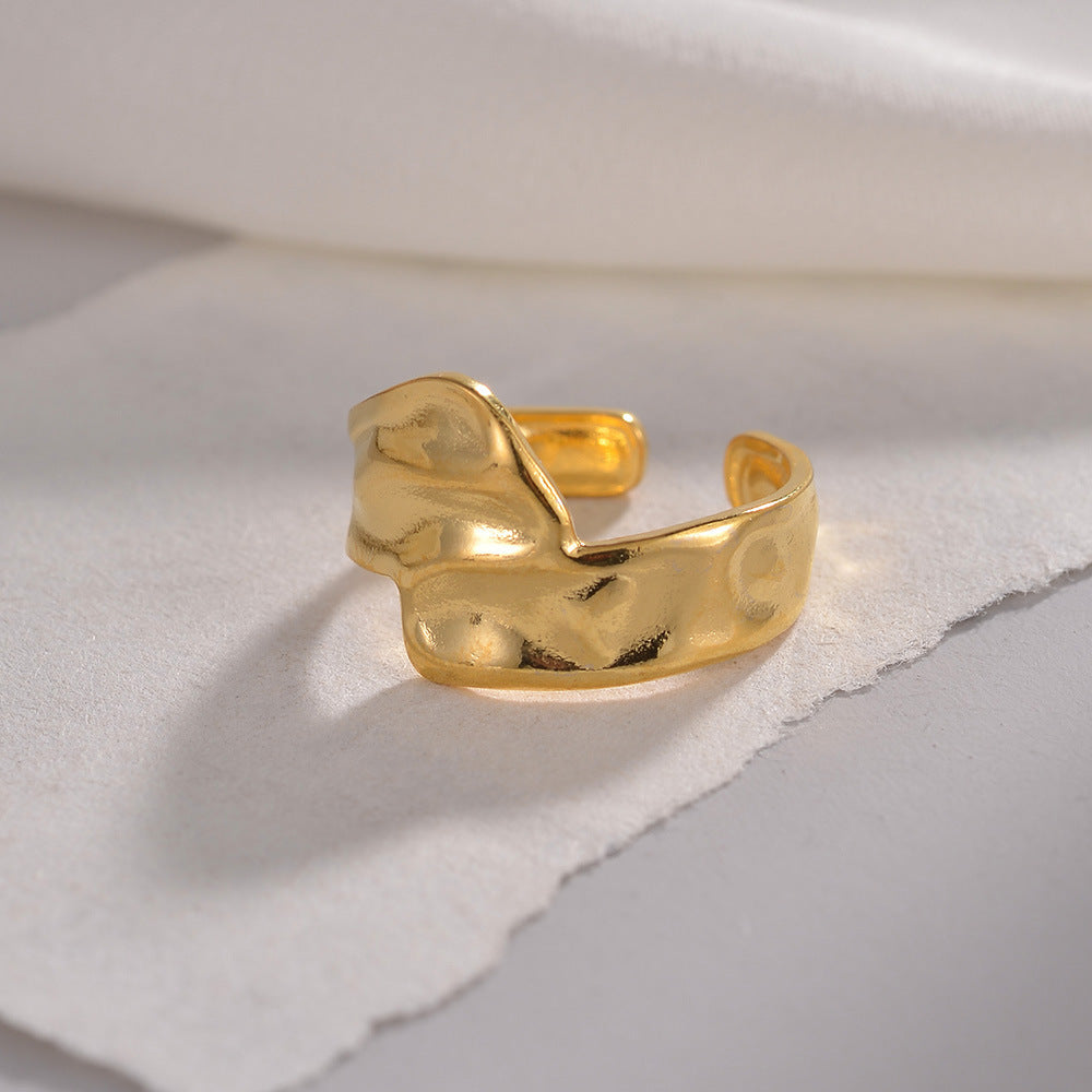Womens Titanium Steel Ring Adjustable Water Ripple Design Geometric Ring Electroplated Finish Movable Opening Ring