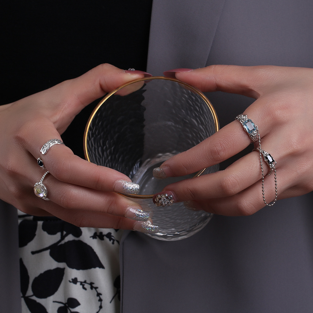 Women's Adjustable Pearl Zircon Geometric Ring Set Copper Electroplated Fashion Jewelry For Everyday Wear Chic