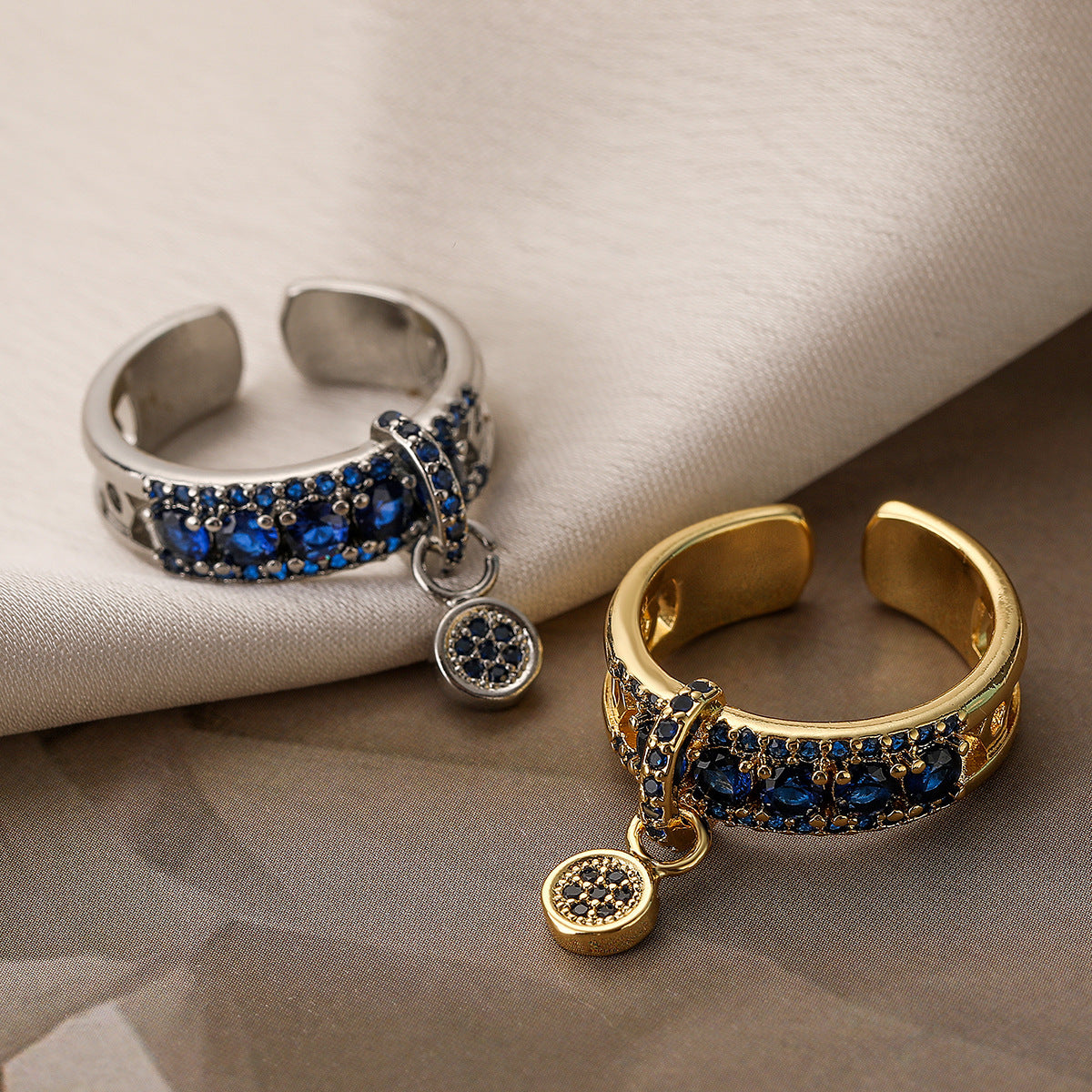 Womens Adjustable Open Geometric Zircon Ring Copper Plated Gold Tone Fashion Jewelry Elegant Shine For Any Day
