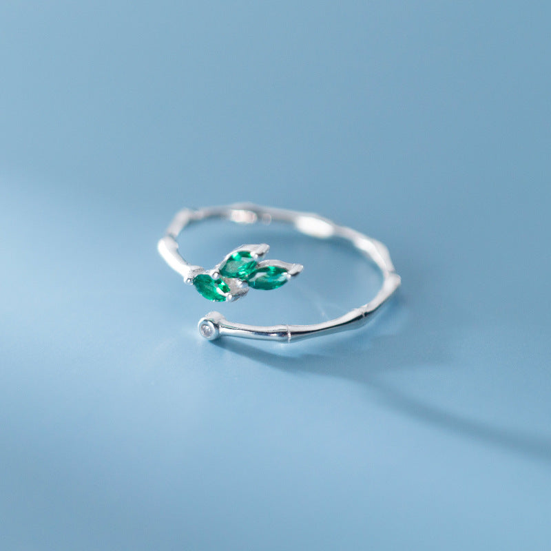 S925 Silver Ring Bamboo Leaf Design Adjustable Jewelry