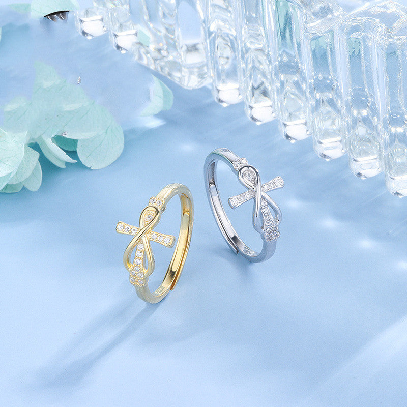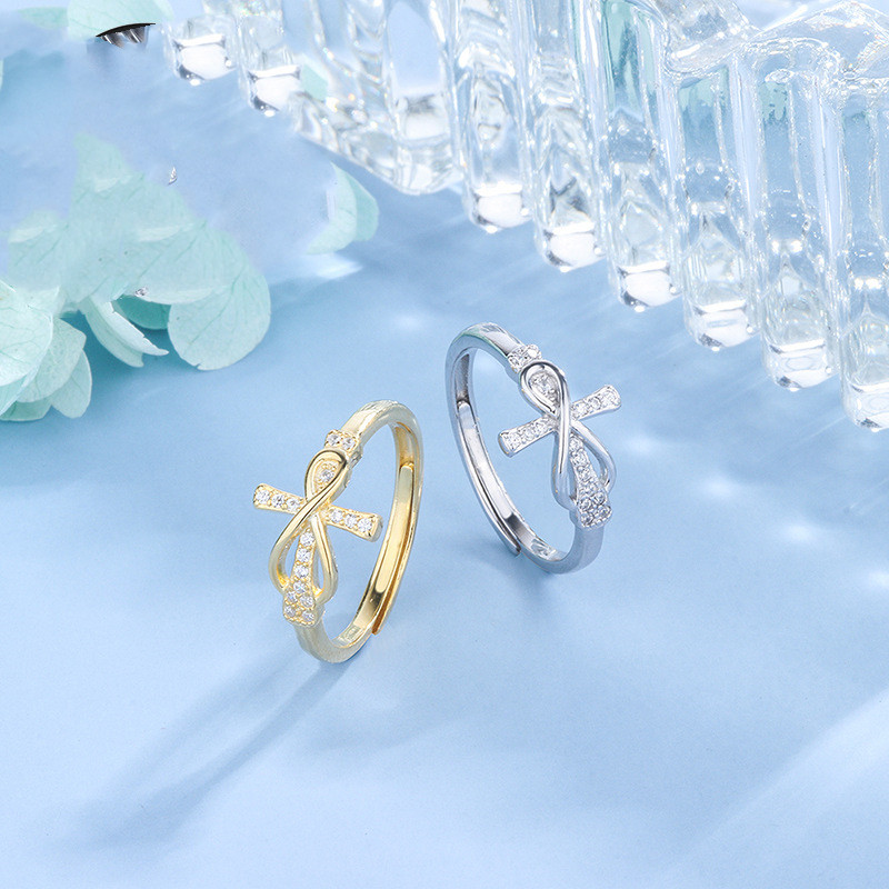Sterling Silver Micro Diamond Cross Ring Lightweight 9x13mm Fashion Ring Gift For Him Or Her White Gold Golden
