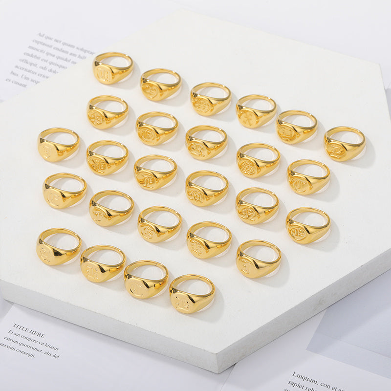 Unisex Copper Letter Ring Vintage Plated Design Ancient English Glyph Inspired Everyday Wearable Copper Iconic