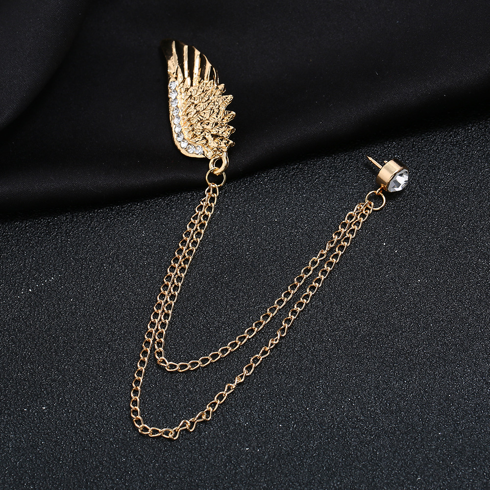 Angel Wings Brooch Silver Plated Rhinestone Metal Tassel Chain Unisex Vintage Fashion Pin Handcrafted Gem Sets