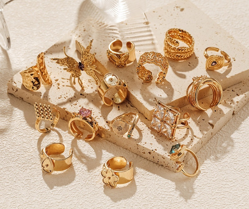 Asymmetric Open Ring Personalized 18K Gold Plated Copper Adjustable Vintage Retroism Geometric Fashion Jewelry