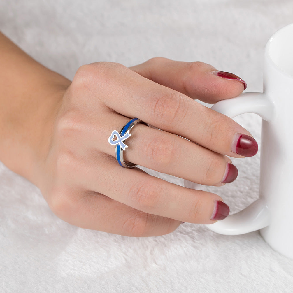 Unisex Titanium Steel Ring With Blue Epoxy Finish Geometric Design Autism Awareness Band Durable For Festivals Style