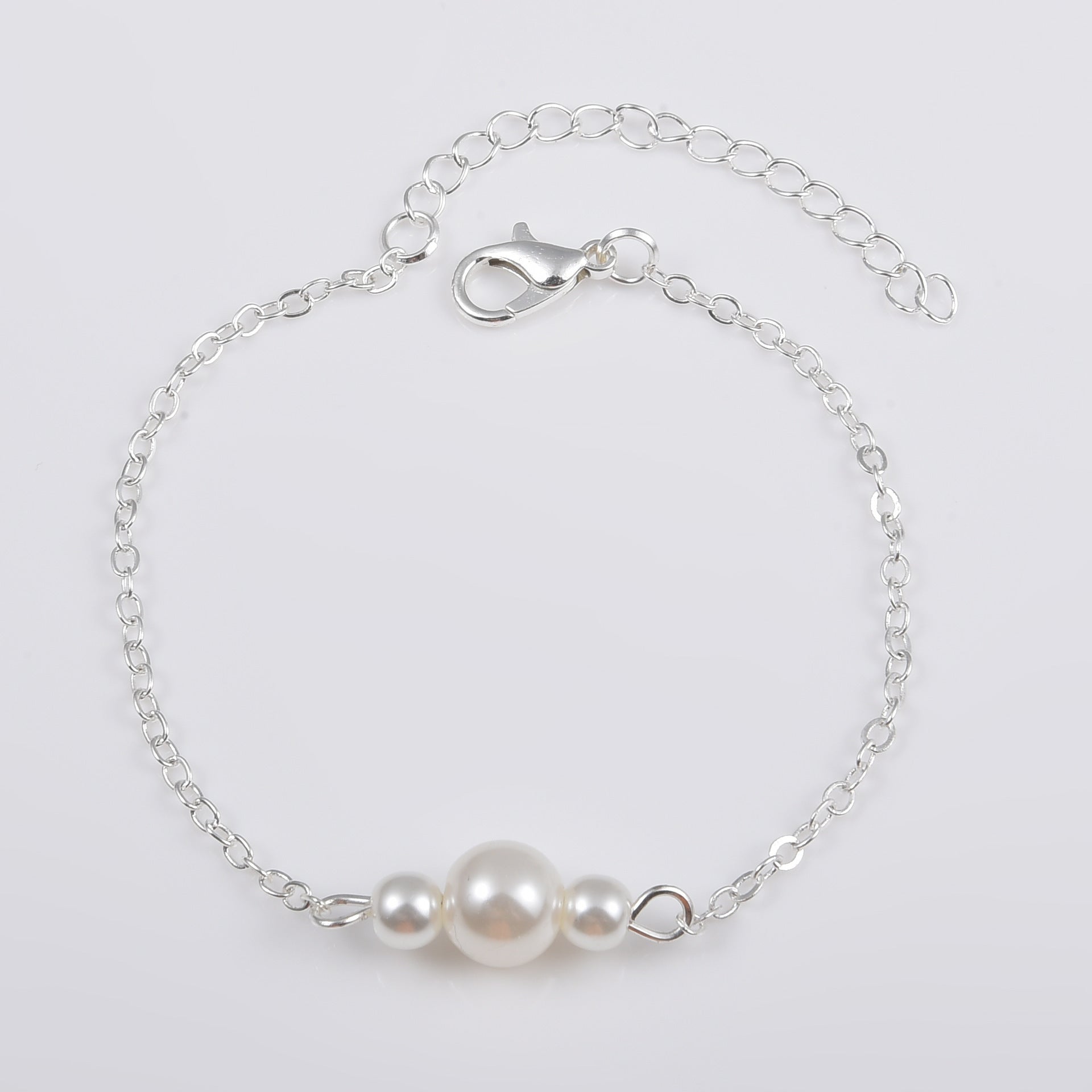Pearl Beaded Bracelet With Chain Extender Elegant Glossy White Pearl Gift For Valentines Day Birthday Presents