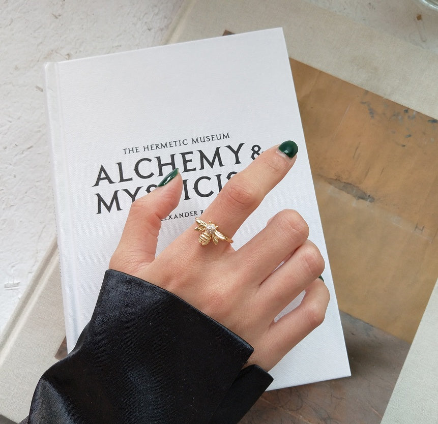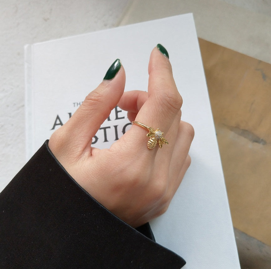 Sterling Silver Bee Ring Adjustable Open Band Insect Jewelry Vintage Style For Women Girls Delicate Collection