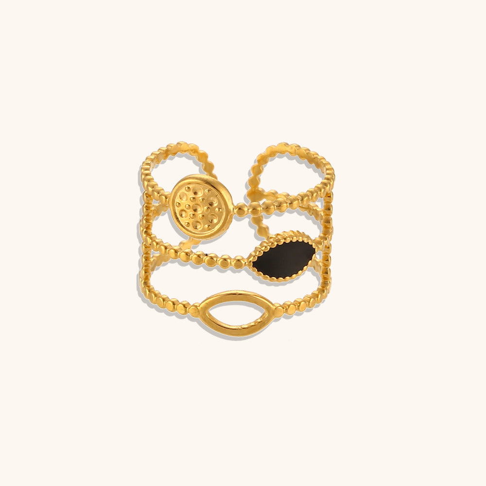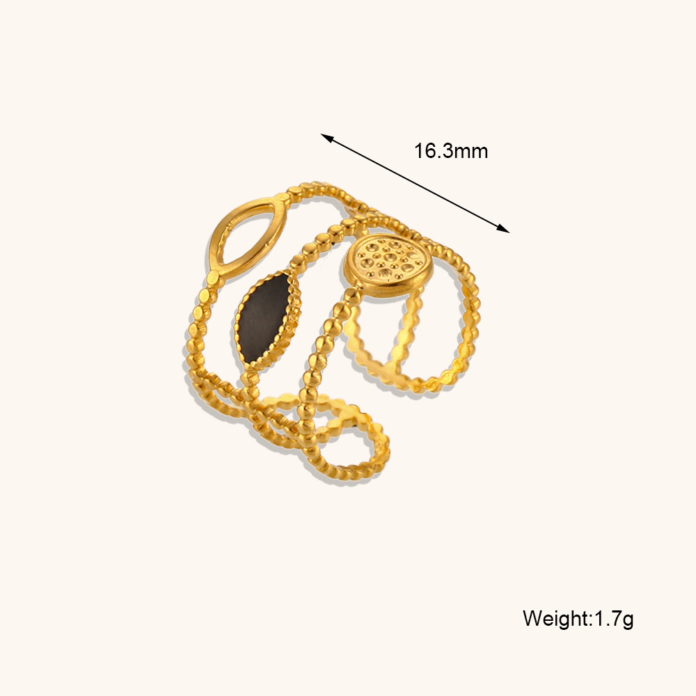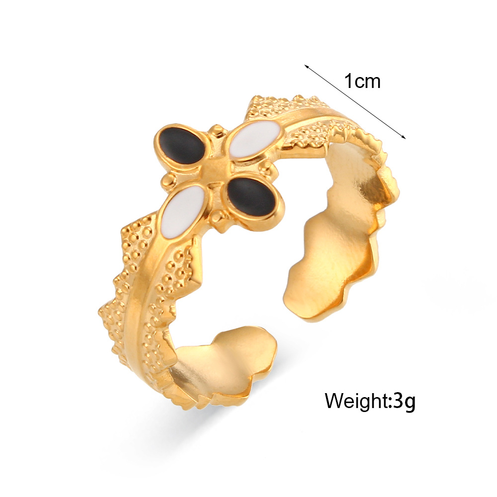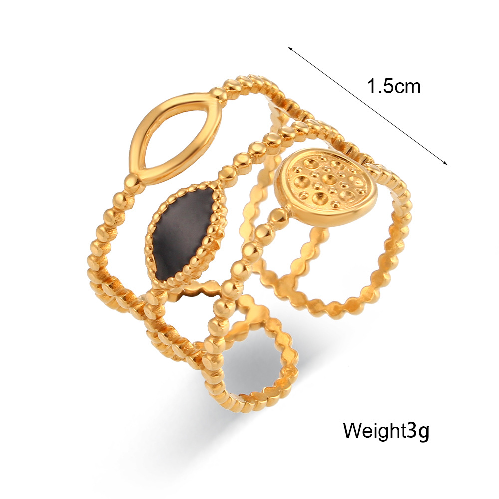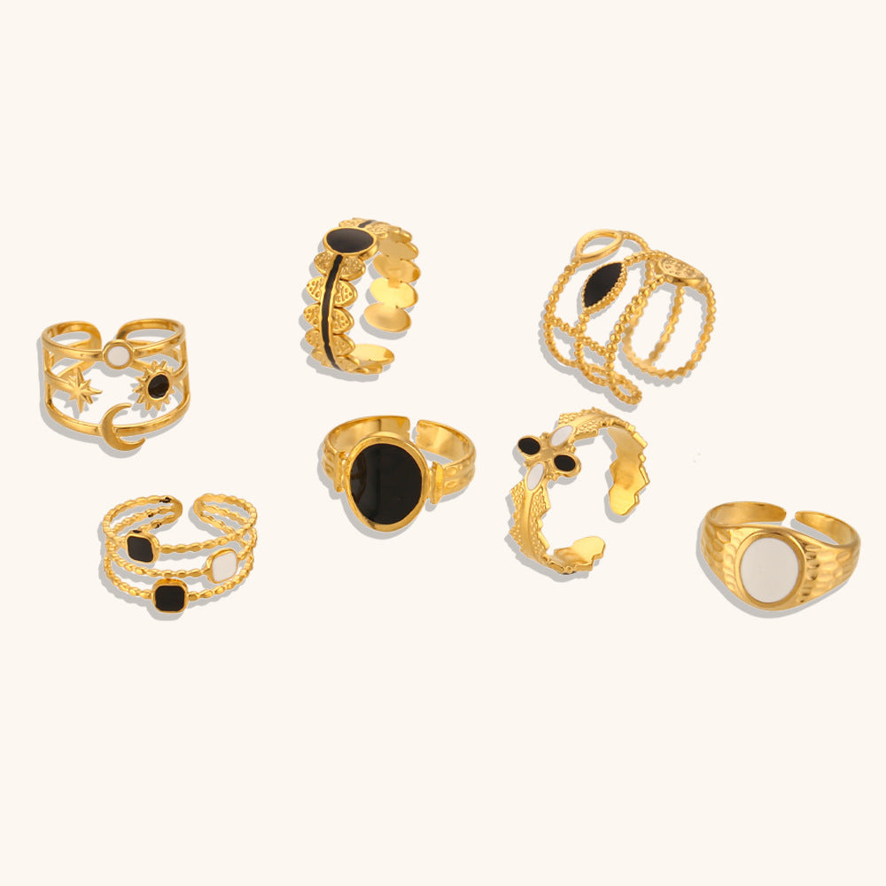 Womens Stainless Steel Ring Sun Moon Star Oil Drip Black White Waterproof Rustproof Hypoallergenic Durable Stylish