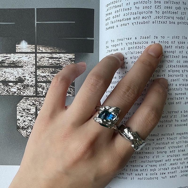 Azure Crystal Geometric Ring Adjustable Gold Plated Alloy Artificial Gemstone Jewelry Fashion Statement Sparkle