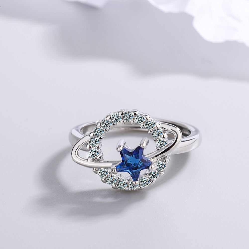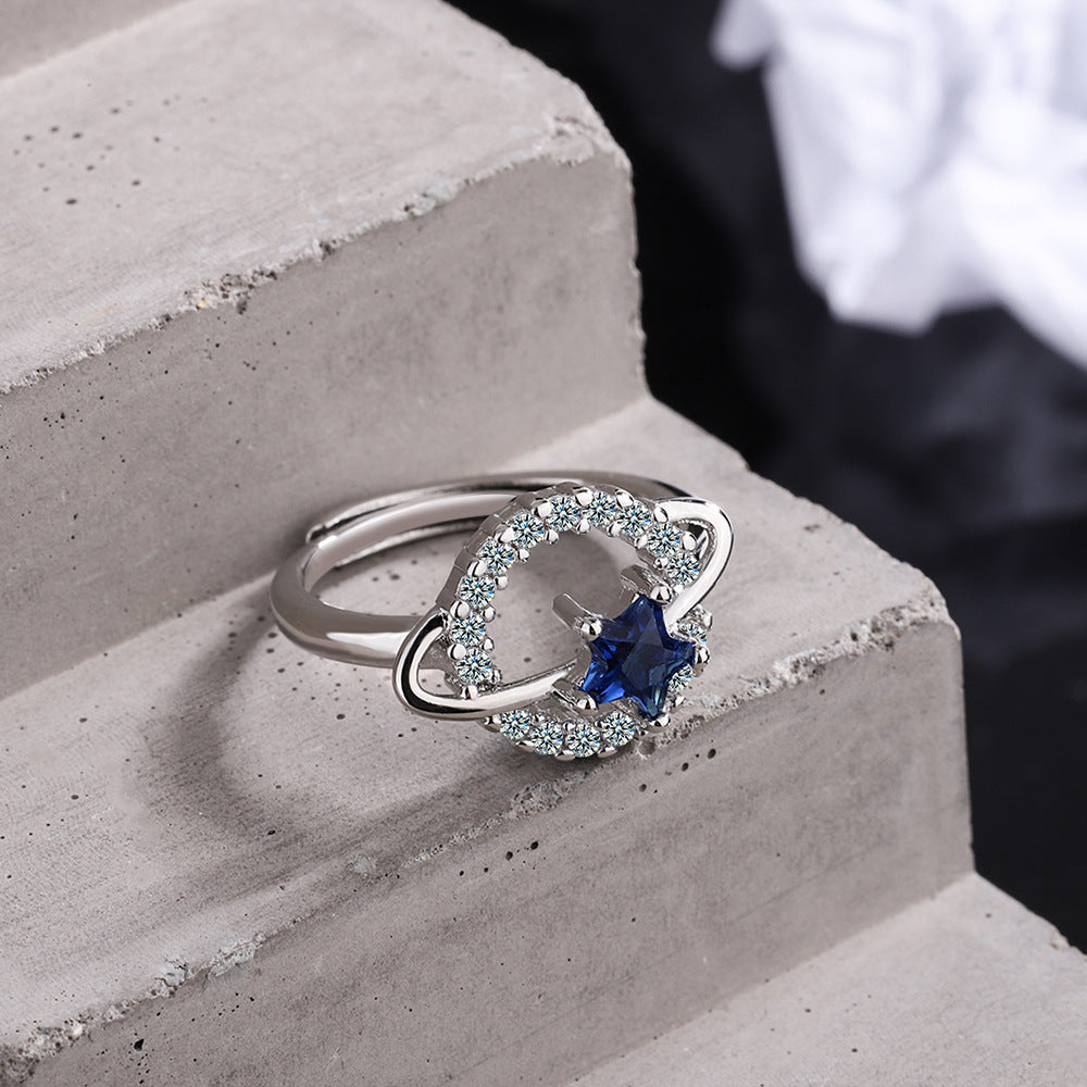 Womens Fashion Ring Adjustable Copper Ring Planet Pentagram Design 12mm Wide Platinum Plated Modern Look Style
