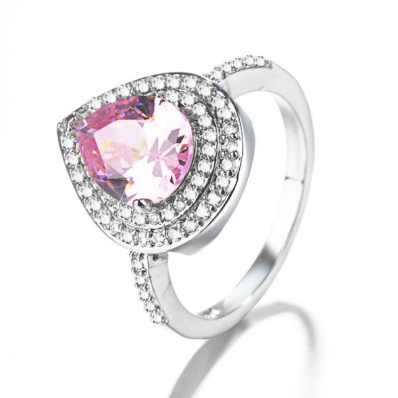 Blue Topaz Water Drop Pear Ring Sterling Silver Diamond Accented Gemstone Jewelry Gift For Her Elegant Sparkle