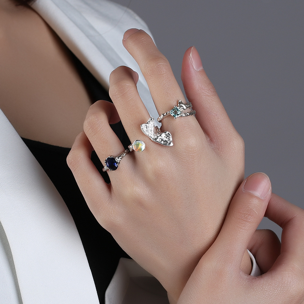 Unisex Adjustable Blue Zircon Ring Copper Electroplated Flower Design Irregular Fashion Jewelry Sturdy For Men And Women