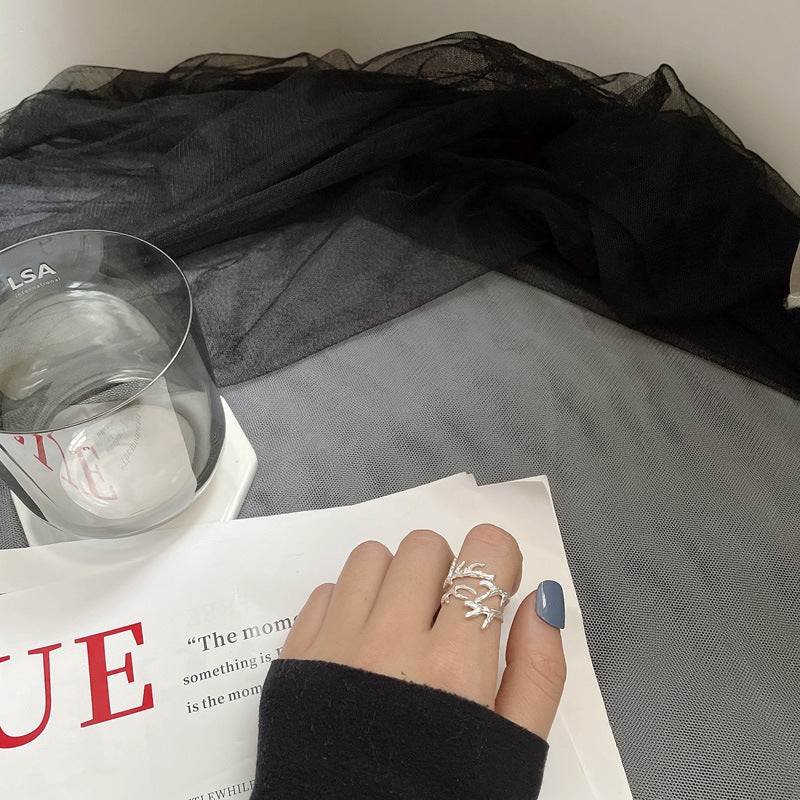 Sterling Silver Antler Ring Adjustable Opening Branch Design Fashionable Elegant Jewelry For Women Handcrafted