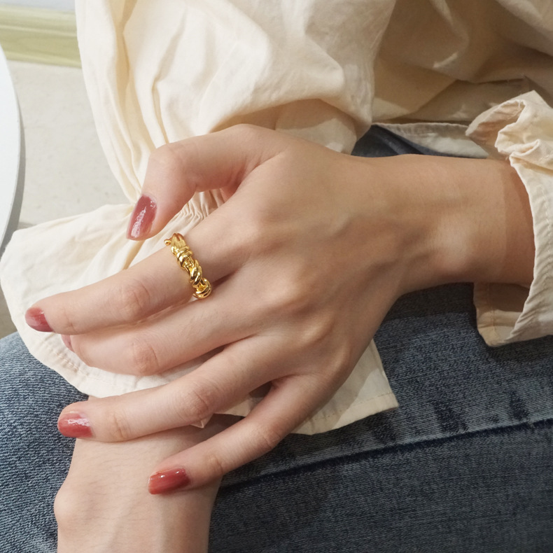 Women 18K Gold Plated Brass Ring European Pig Nose Design Statement Ring Trendy Adorn Chic Accessory For Women