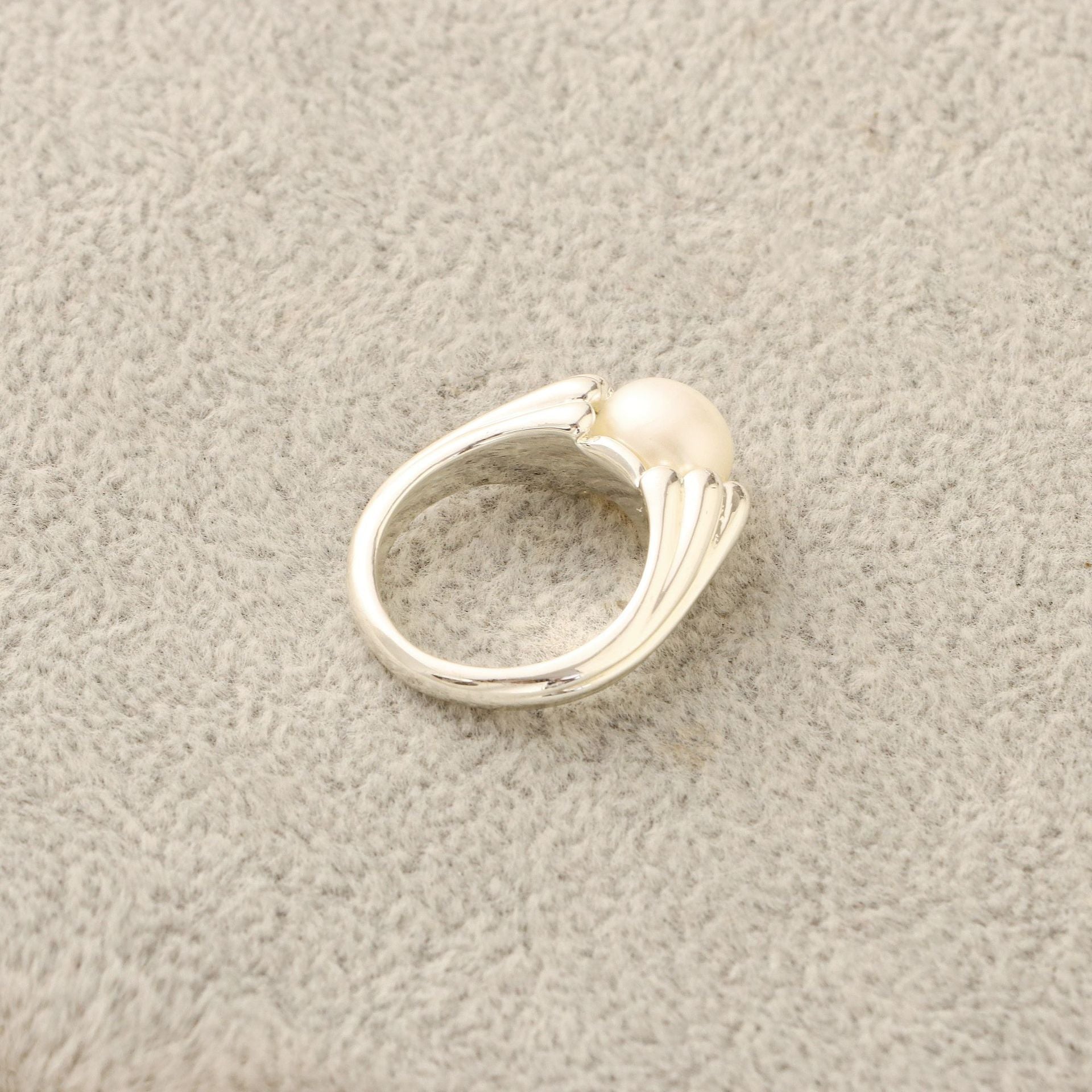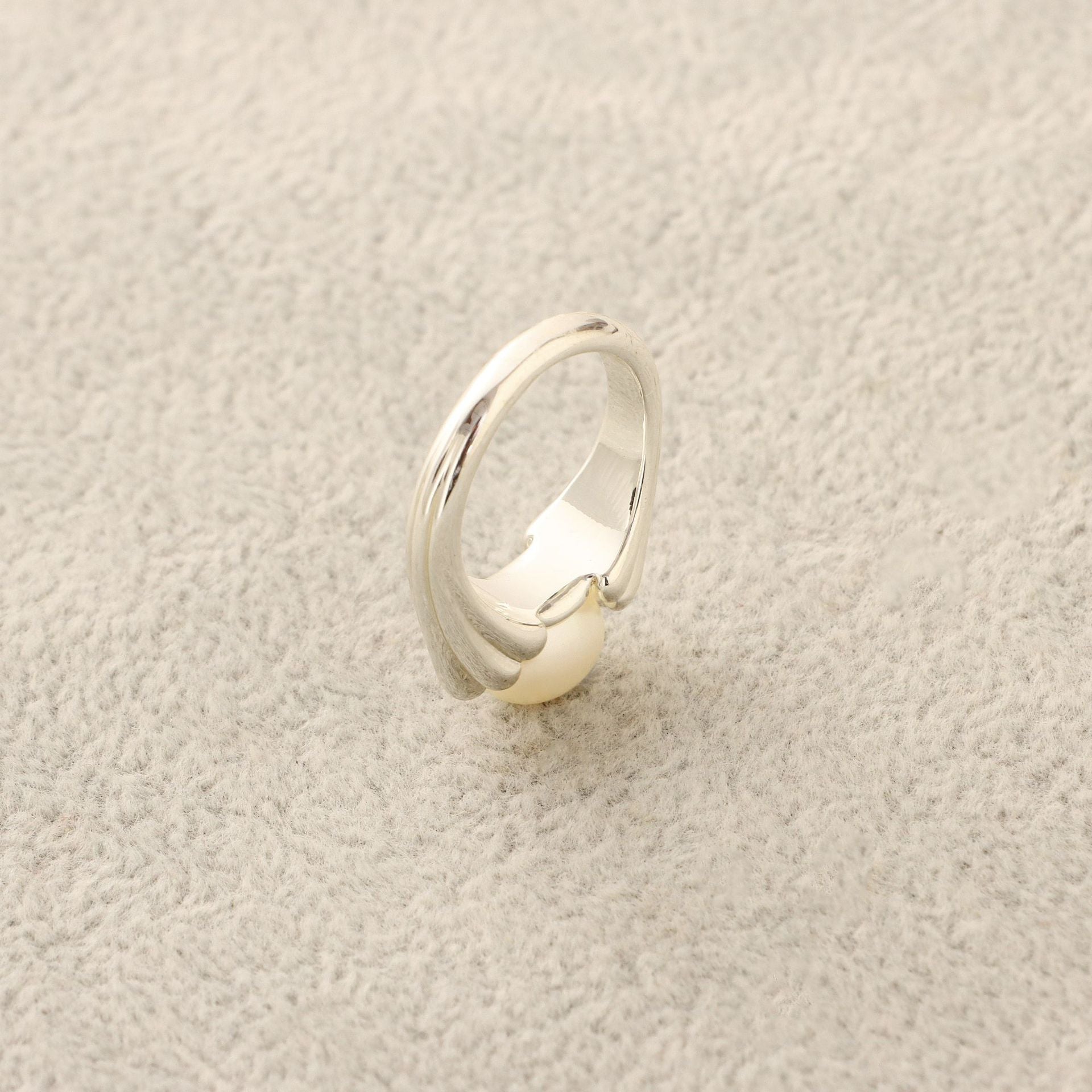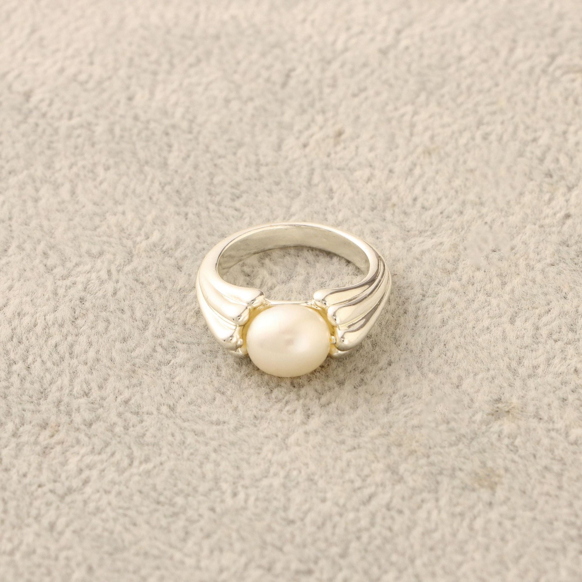 Womens Geometric Ring With Freshwater Pearl Inlay Silver Plated Copper Statement Jewelry Birthday Gift For Her