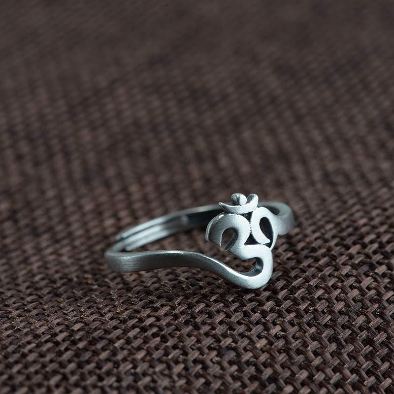 Womens 925 Silver Ring Vintage Open Band Buddhist Six Character Mantra Retro Style Jewelry Hand Crafted Detail