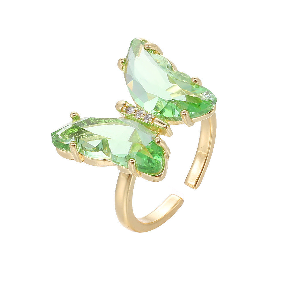 Crystal Butterfly Ring With Zircon Copper Gold Plated Finish For Women Wedding Gift Exquisite Jewelry For Sale