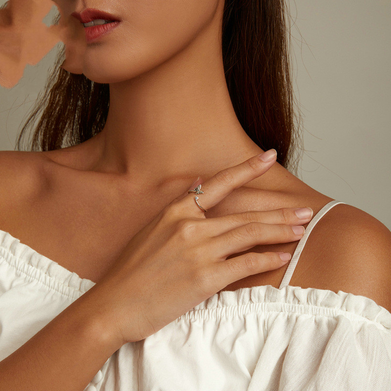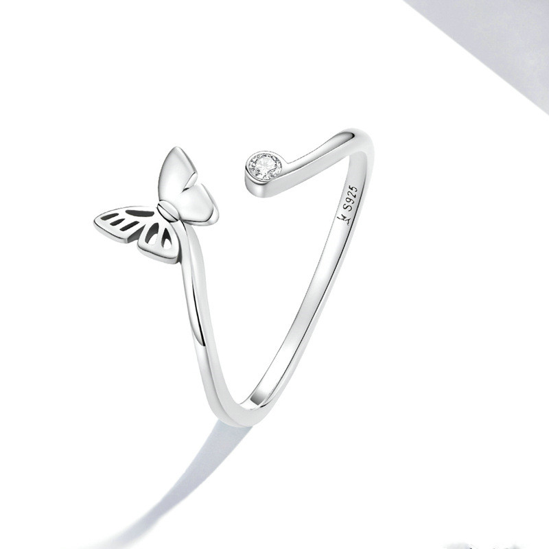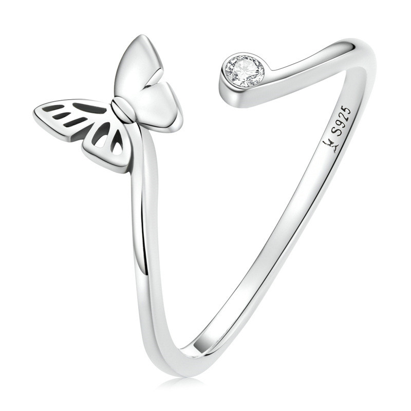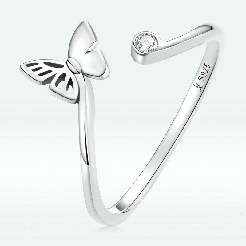 Womens Butterfly Ring S925 Sterling Silver Hollow Insect Design With Zircon Accent Bow Rings High Quality Gift Fashion