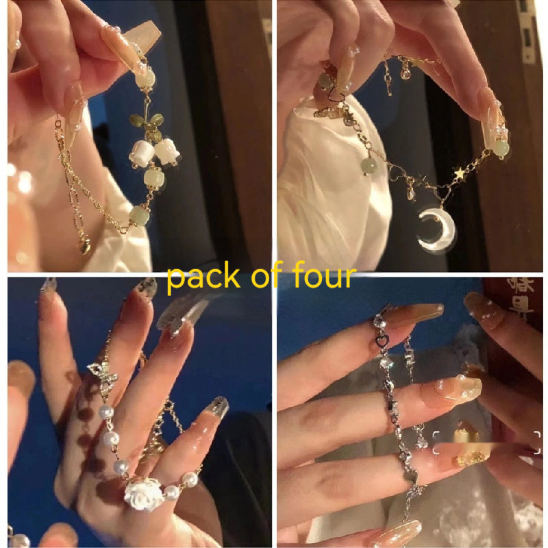 Style: White Camellia bracelet, Lily bracelet, heart shape rhinestone bracelet, Crescent Mountain bracelet