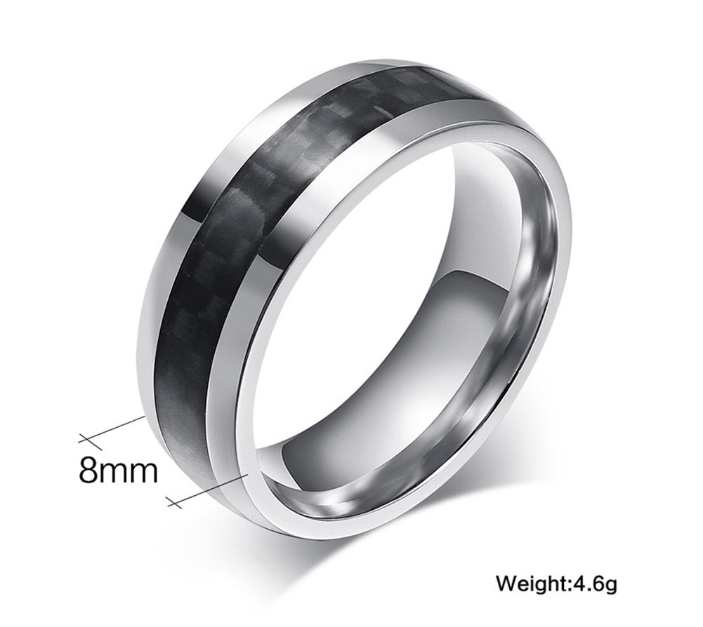 Mens Stainless Steel Carbon Fiber Ring Geometric Design Durable Band For Him Holiday Gift European American Inspired