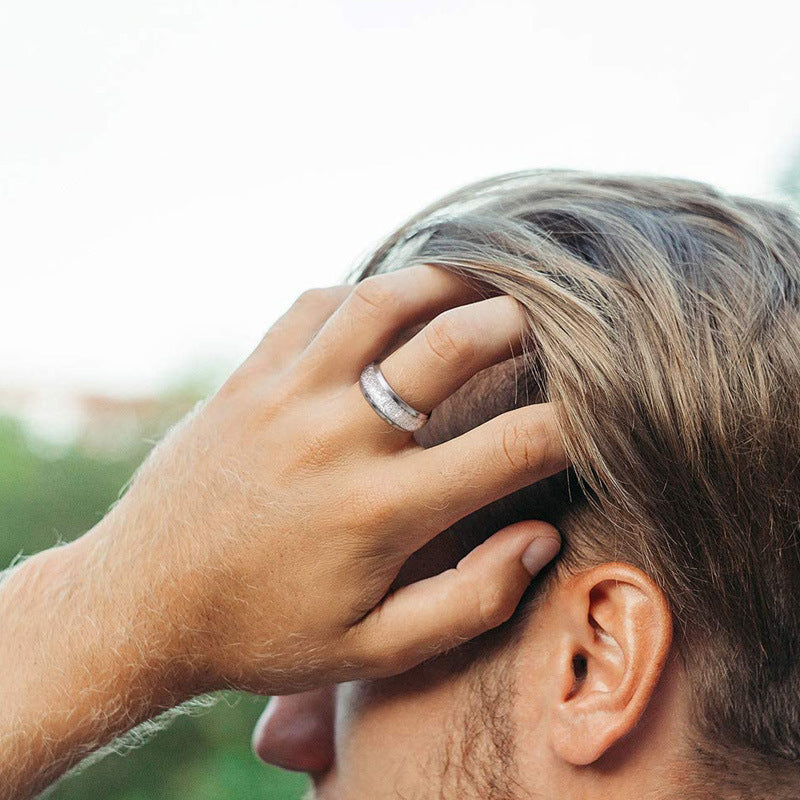 Mens Stainless Steel Ring Inlaid Stone Carbon Fiber Detailing Geometric Line Design Band Jewelry For Men Style
