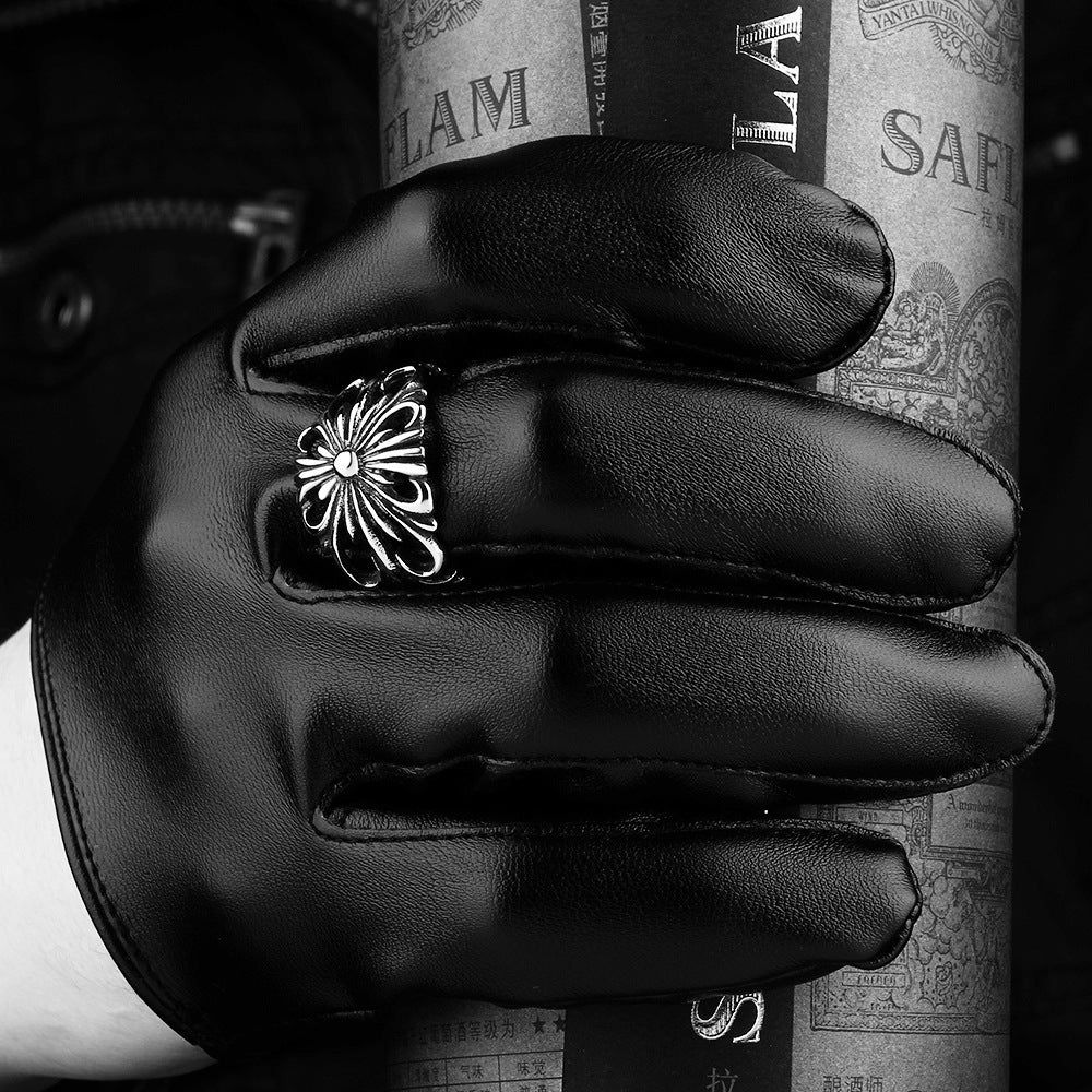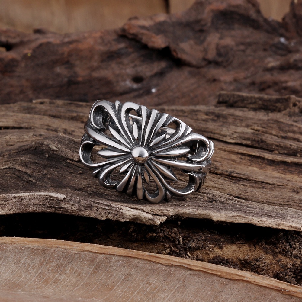 Mens Ring With Carved Pattern Geometric Stainless Steel Durable Anti Oxidation Jewelry Party And Anniversary A