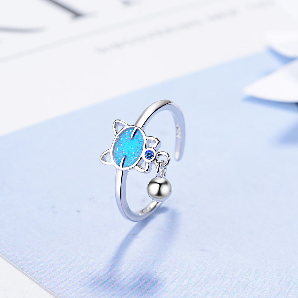 Womens Copper Cat Ring Adjustable Animal Zodiac Epoxy Korean Style Jewelry Gift For Her Fashion Accessory Trendy Piece