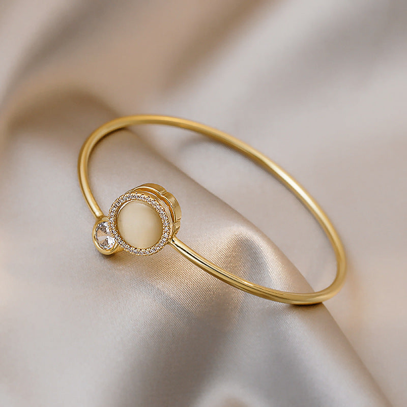 Womens Cat Eye Pendant Necklace Clavicle Chain Titanium Steel Electroplated Geometric Elegant Korean Style Lx