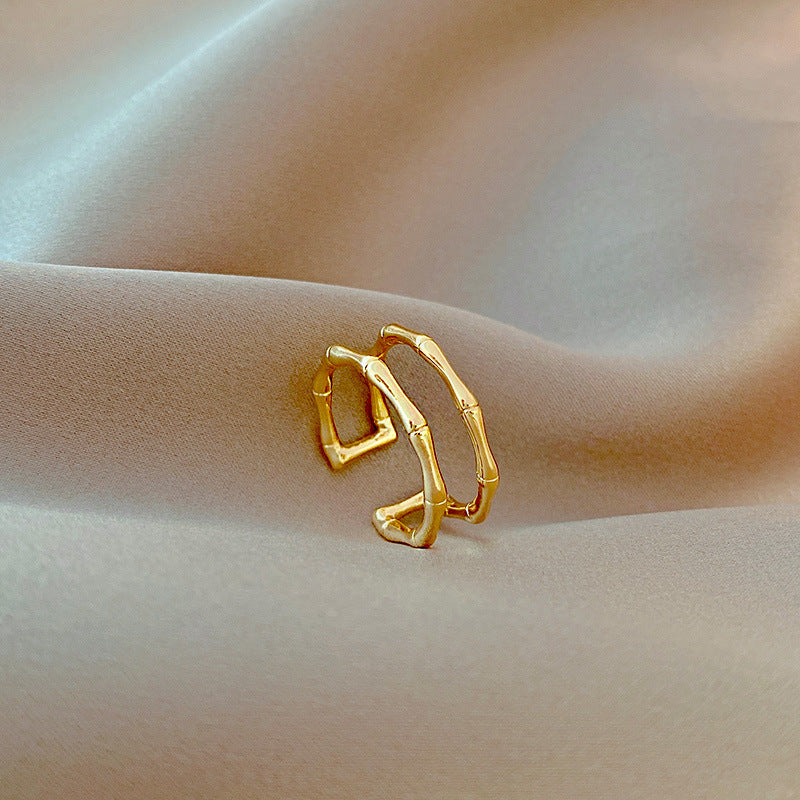 Women Adjustable Gold Plated Rings With Geometric Design And Artificial Gems For Wedding Jewelry Korean Fashion