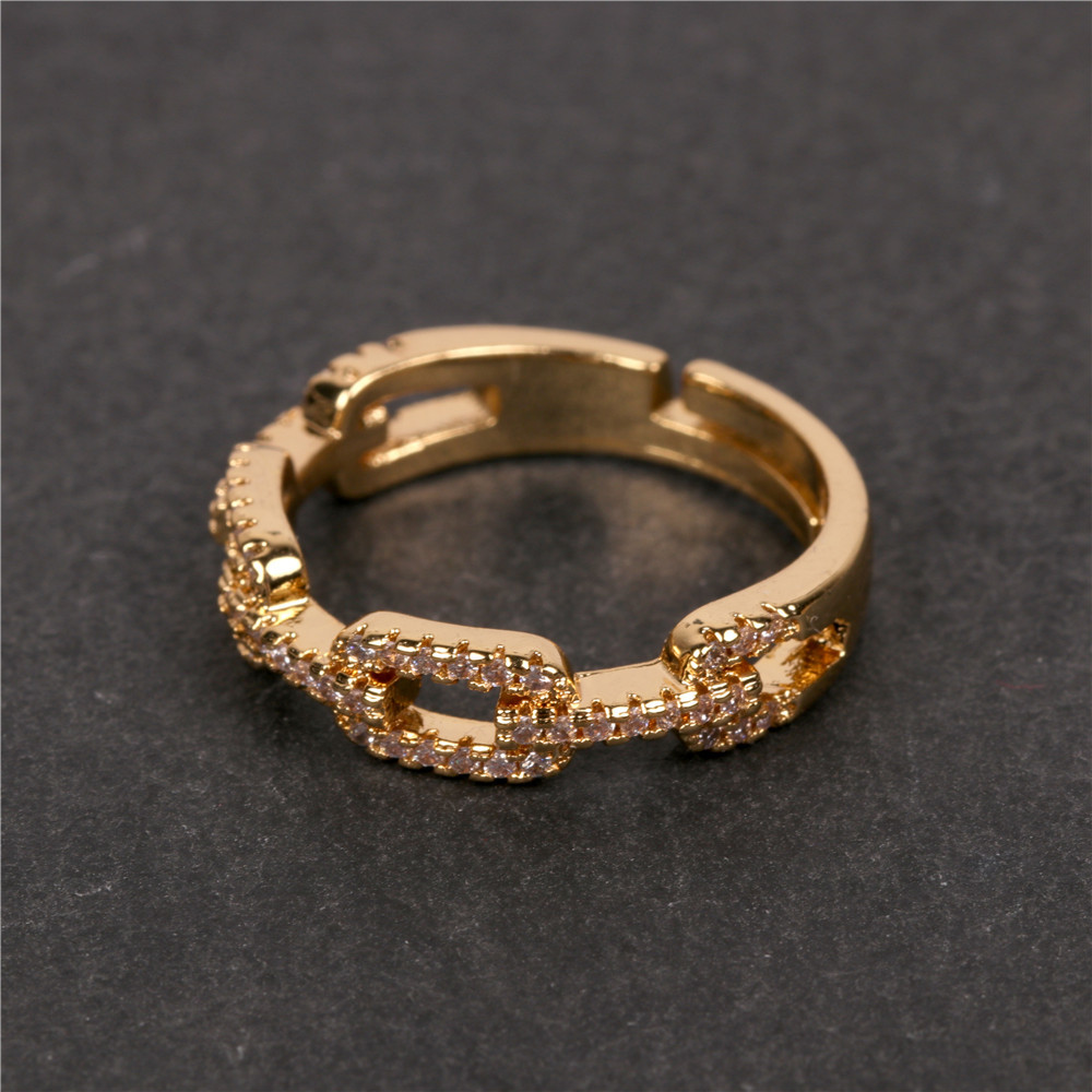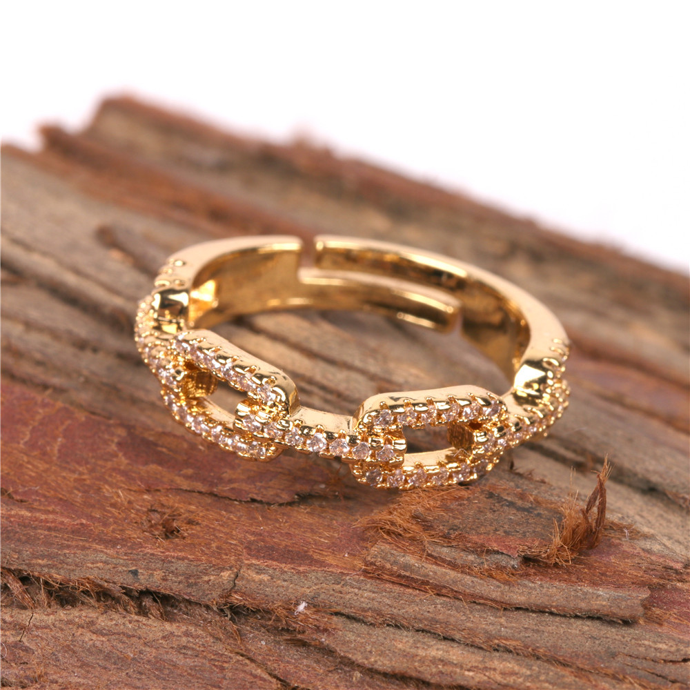 Copper Chain Ring With Zircon Gold Plated Adjustable Fashion Jewelry For Women European American Style Sparkle