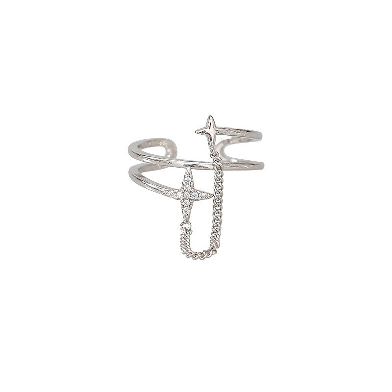 Womens Star Ring With Meteor Chain Design Double Layer Copper Ring Adorned With Zircon Stones Elegant Jewelry For Her