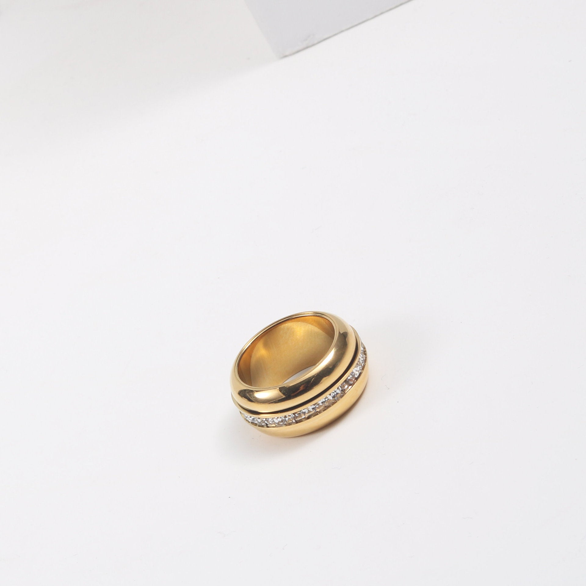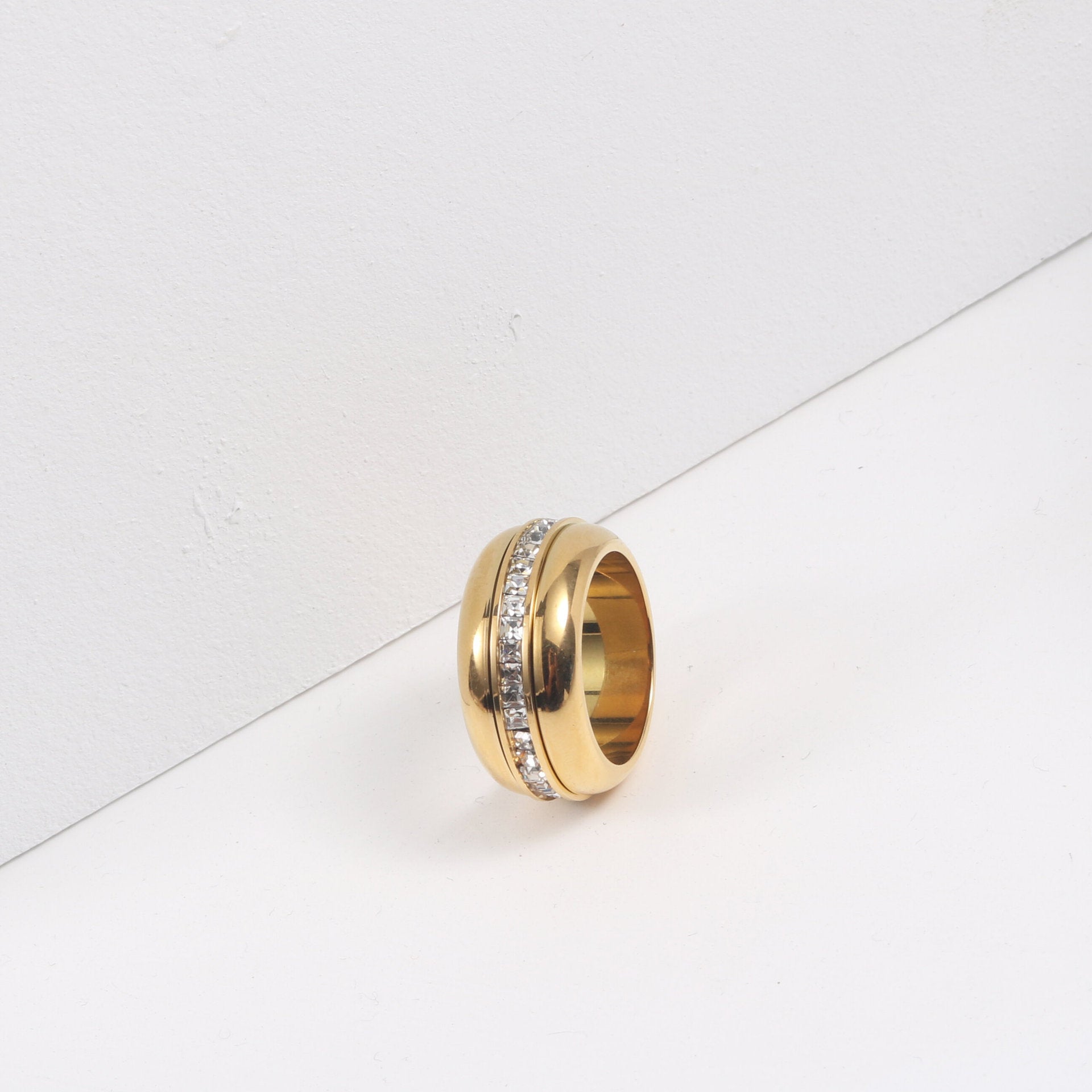 Women's Titanium Steel Ring with Rotatable Circle and Square Zircon Diamond Affordable Luxury Geometric Ring