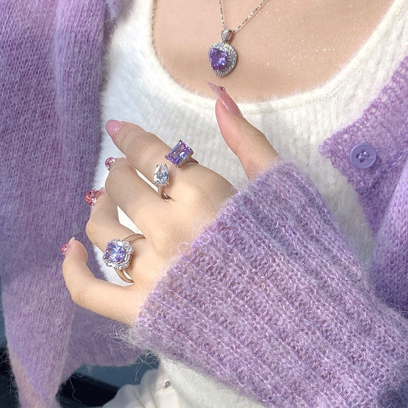 Copper Geometric Ring Purple Zircon Square Design Elegant Jewelry For Women Fashion Ring Elegant Jewelry Addon