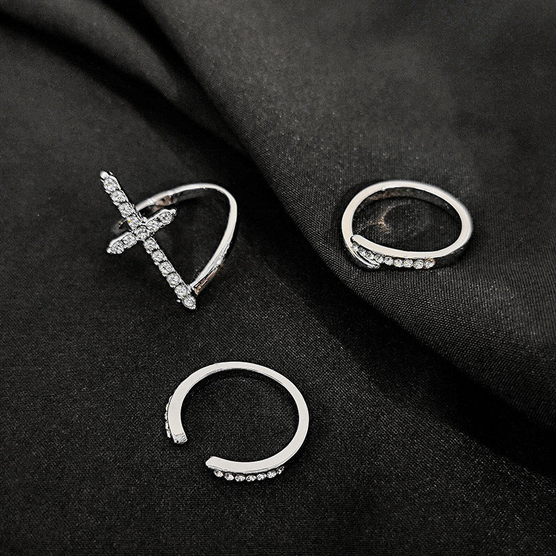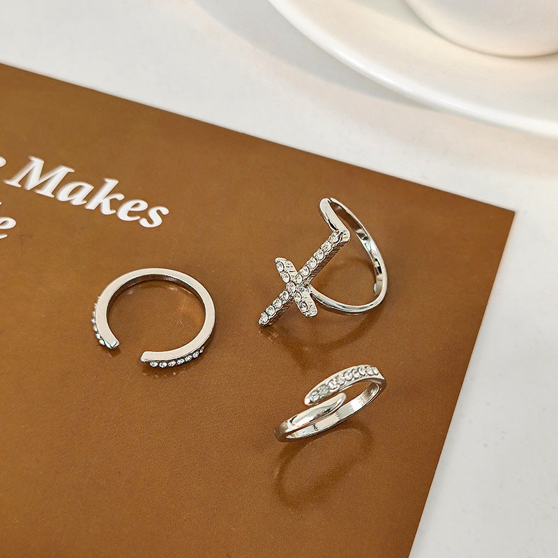 Adjustable Cross Ring For Women And Men Retro Geometric Alloy Electroplated Inlaid Design Jewelry Mosaic Inlaid Gems
