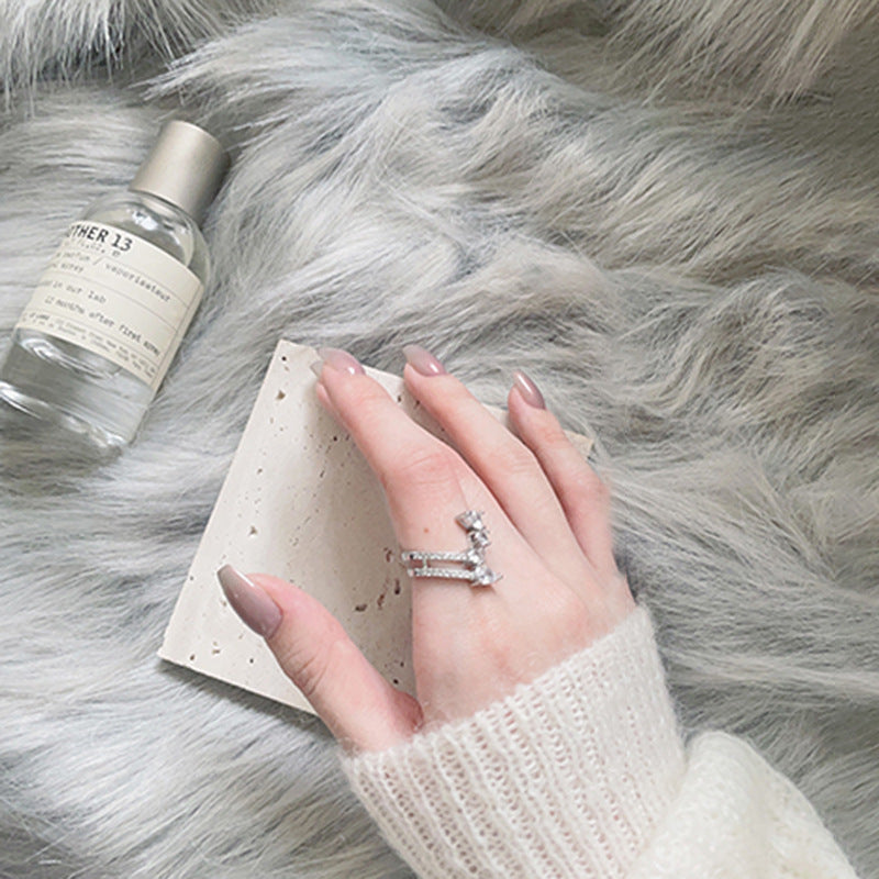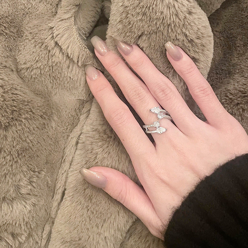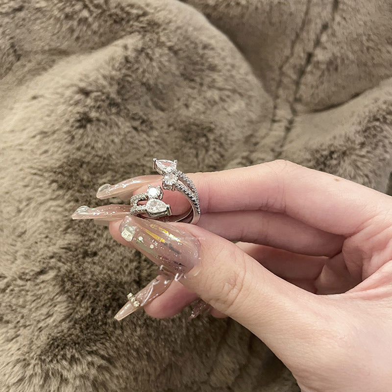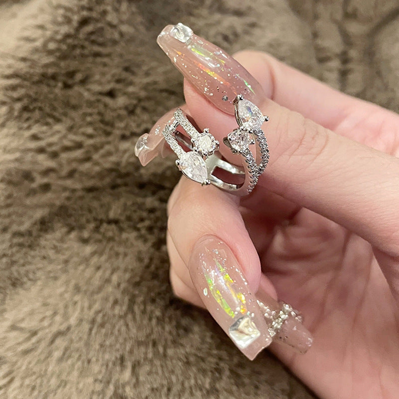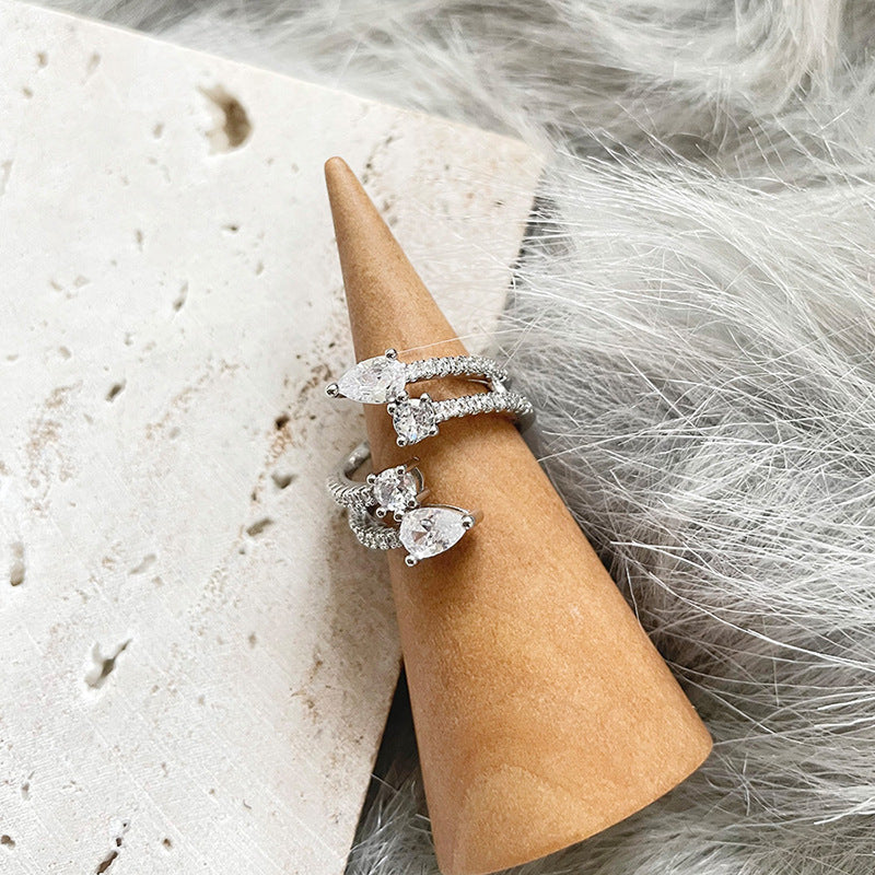Womens Zircon Water Drop Copper Geometric Ring Open Adjustable Dual Layer Elegant Chic Jewelry Gift Idea Today