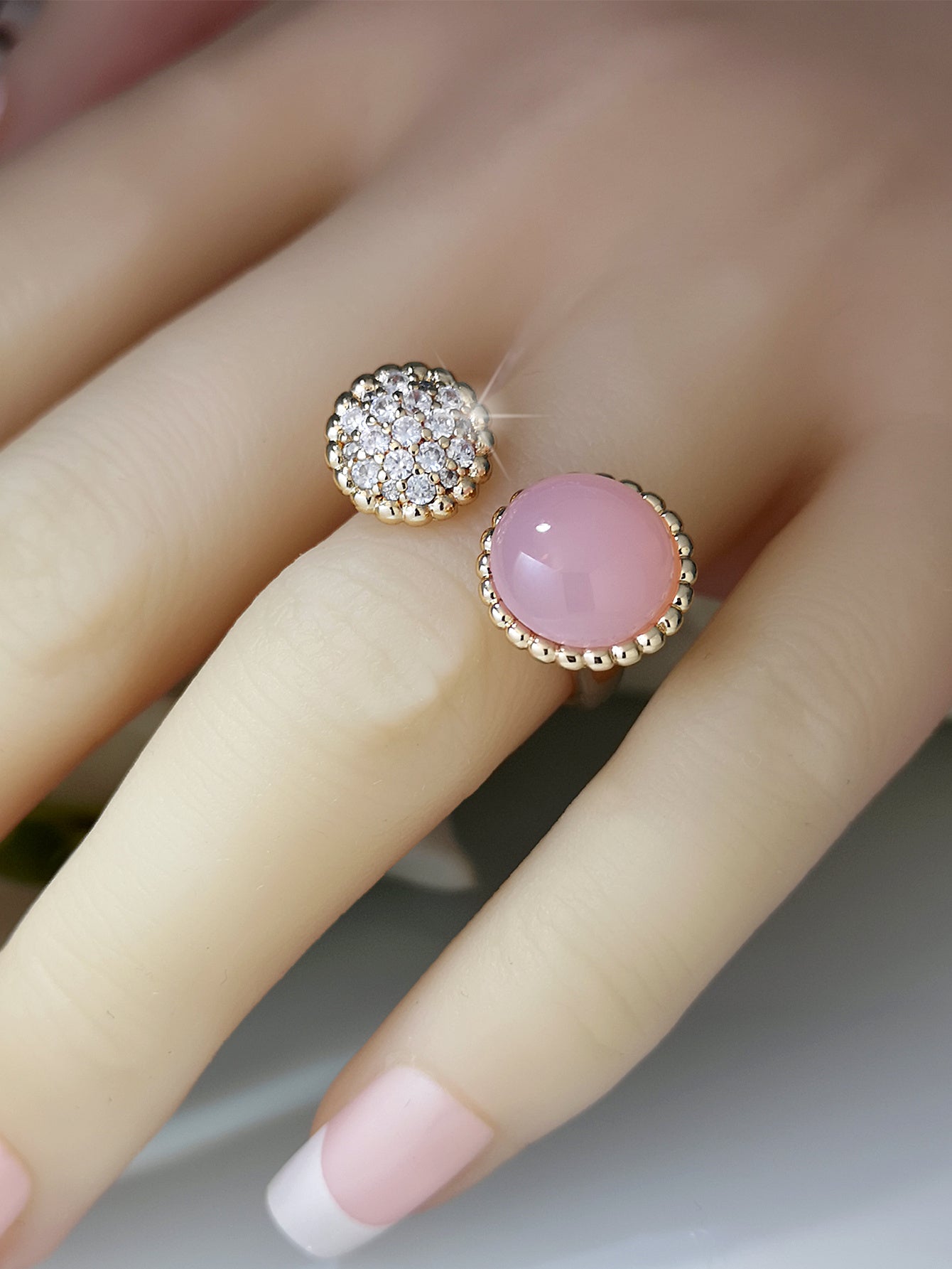 Rose Gold Geometric Ring Copper Zircon Accents Glass
