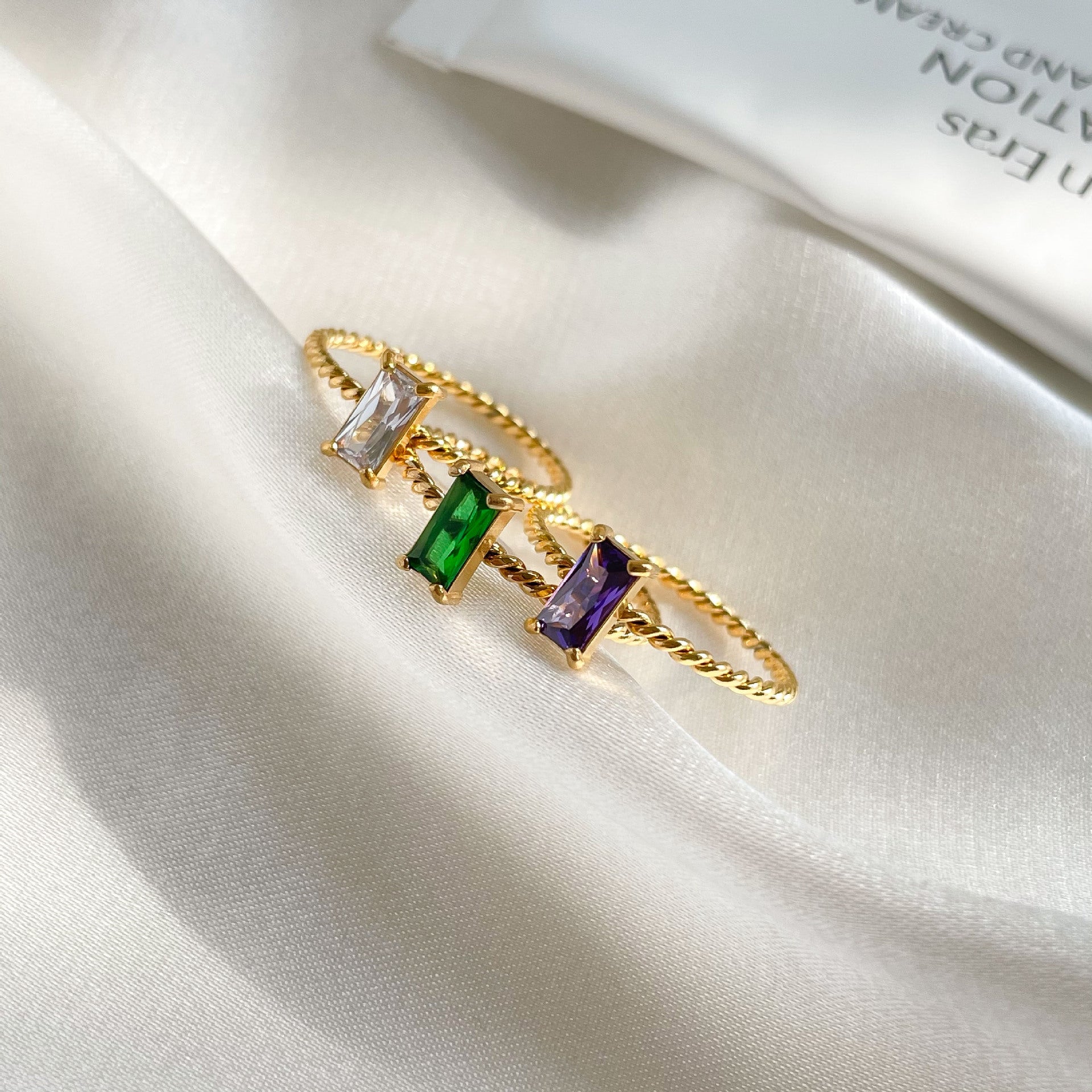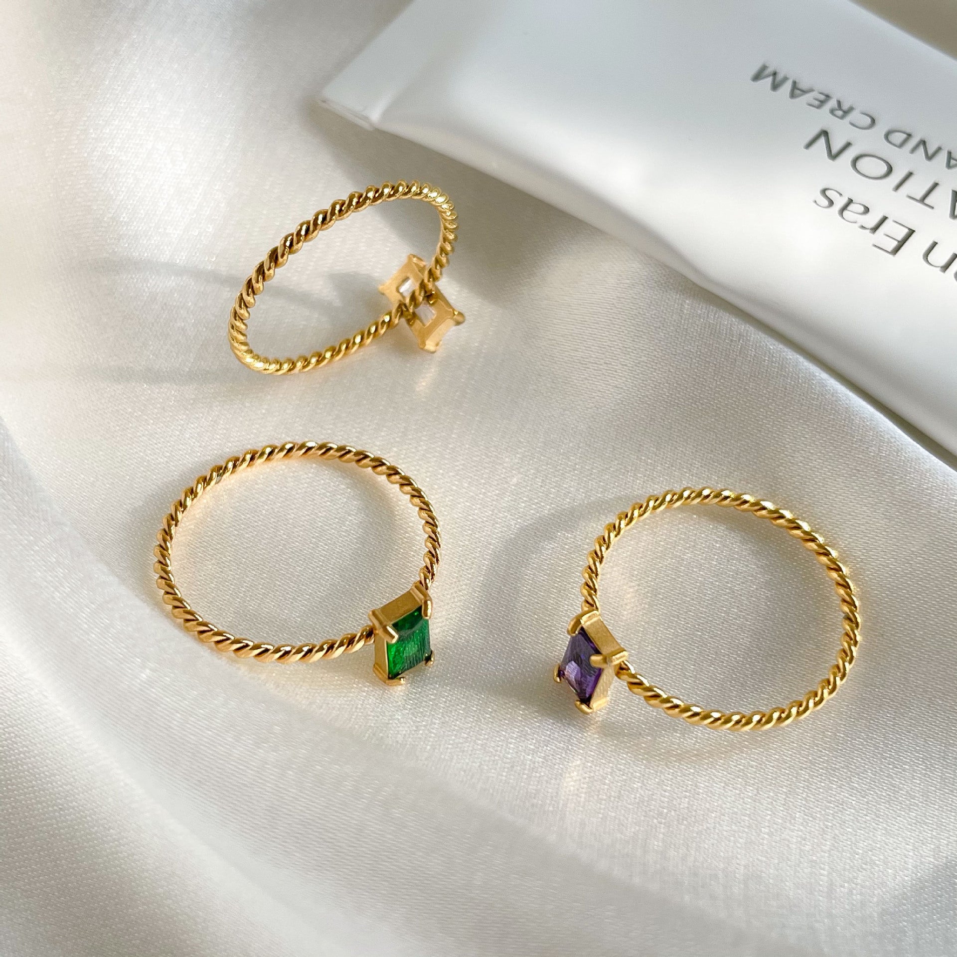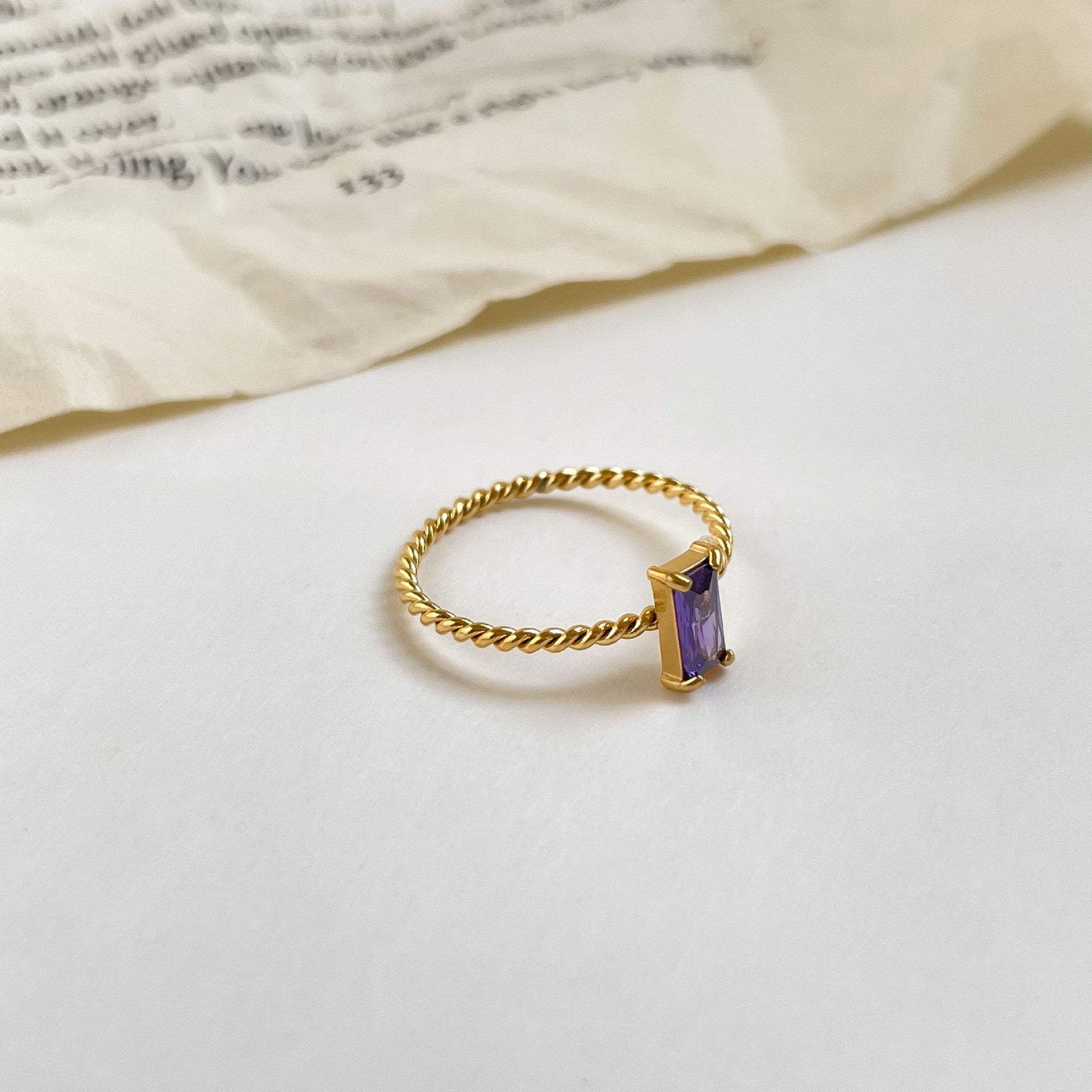 Women Titanium Steel Ring Purple Square Zircon Geometric Wreath Designer Electroplated Durable Fashion Jewelry