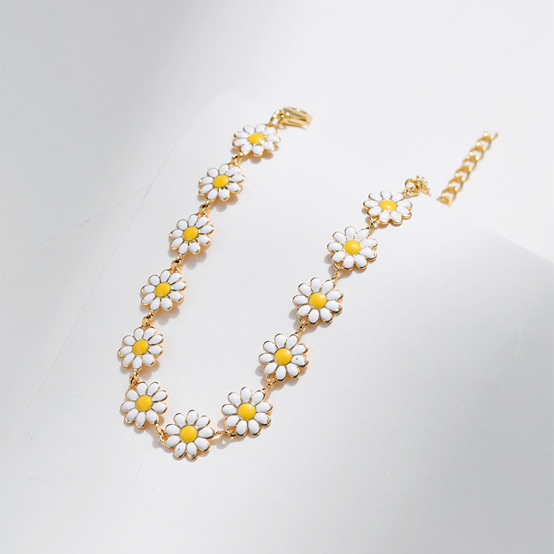 Womens Copper Flower Bracelet Dripping Oil Design With Daisy Fashion Jewelry Accessories Elegant Gift For Her